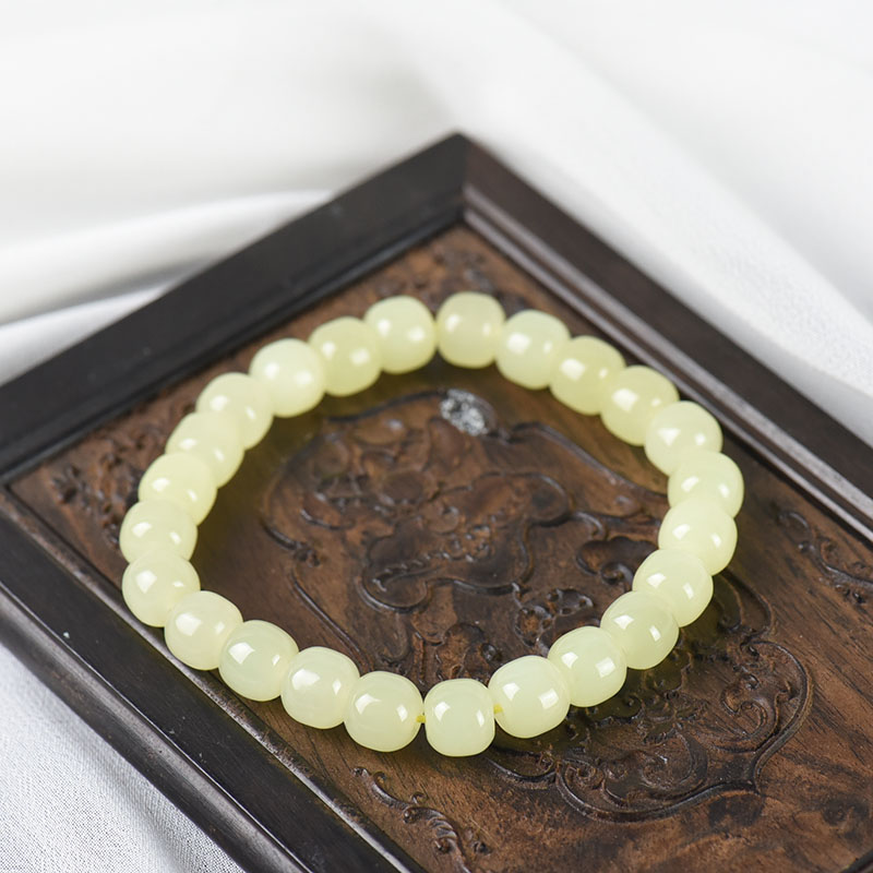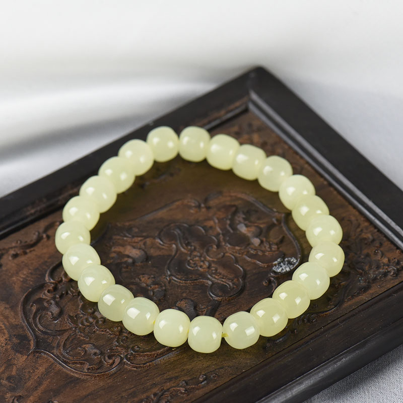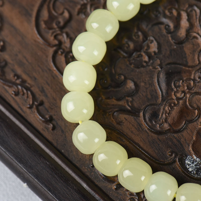 • 山料和田黄玉老形珠单圈手串