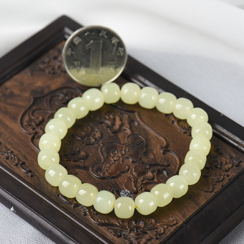 • [名  称] 山料和田黄玉老形珠单圈手串