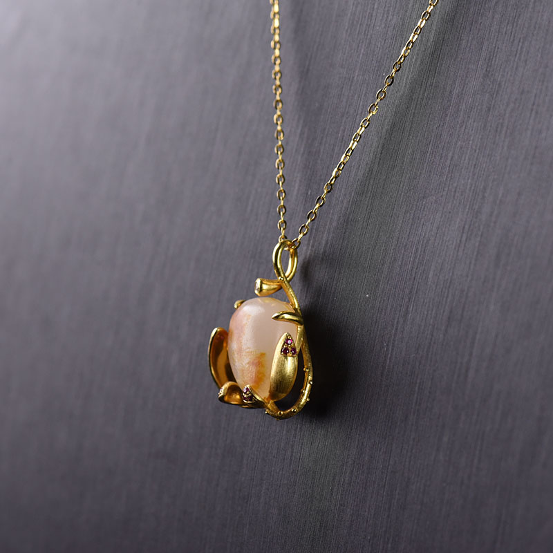 • [名  称] 18K籽料和田玉原石荷花吊坠