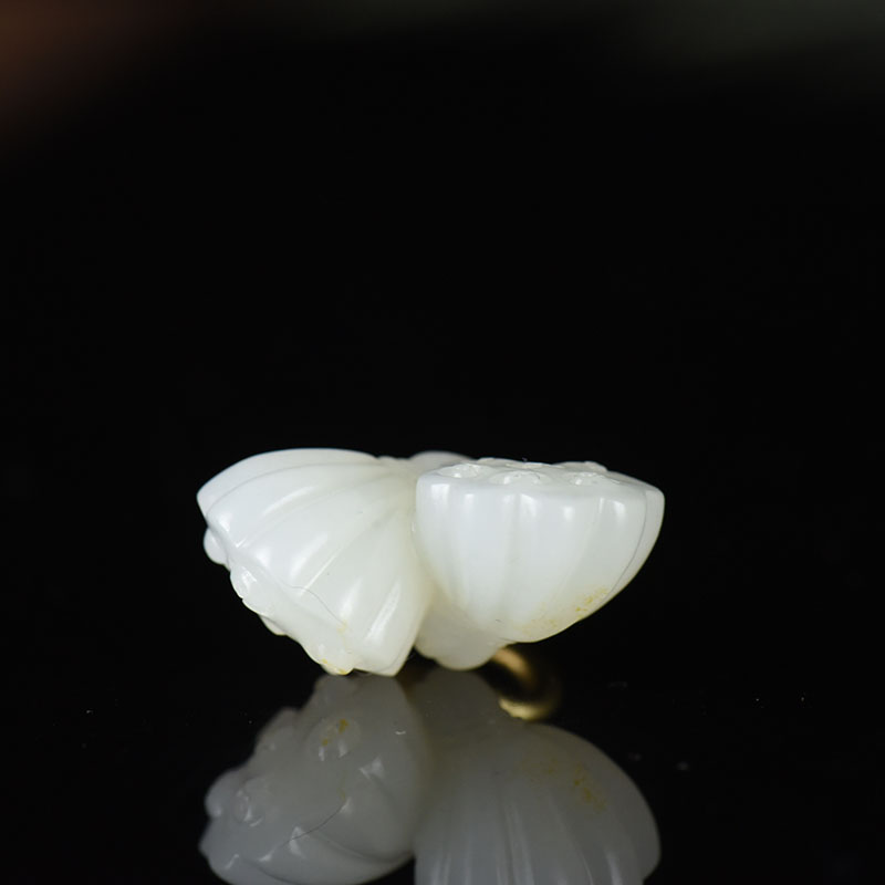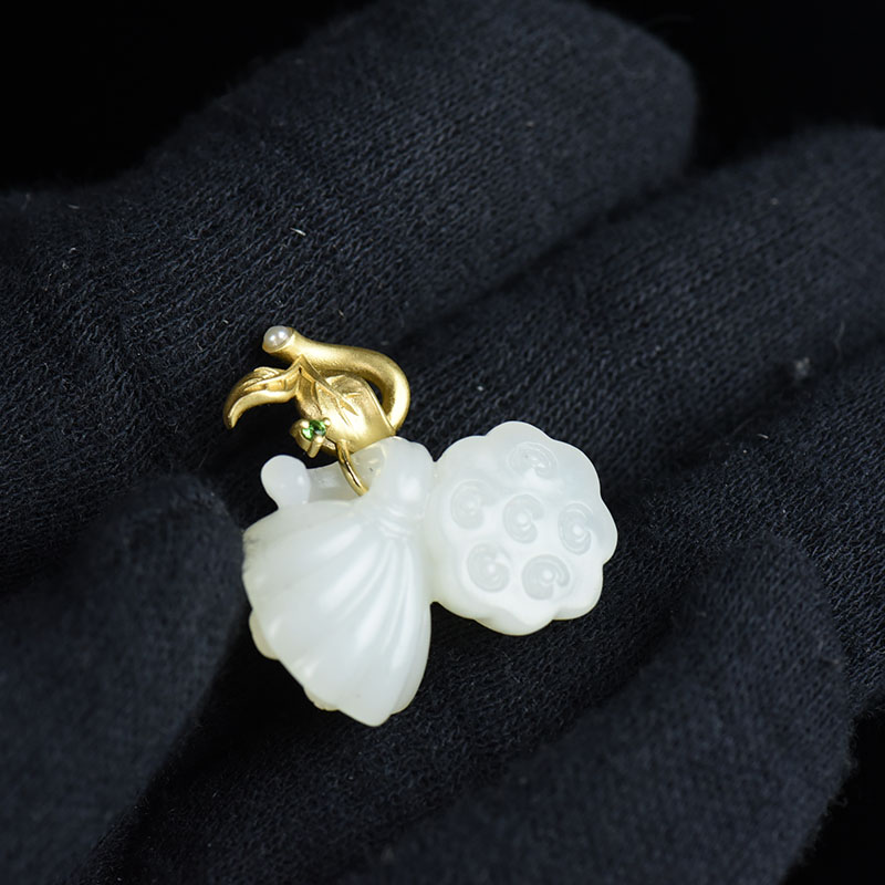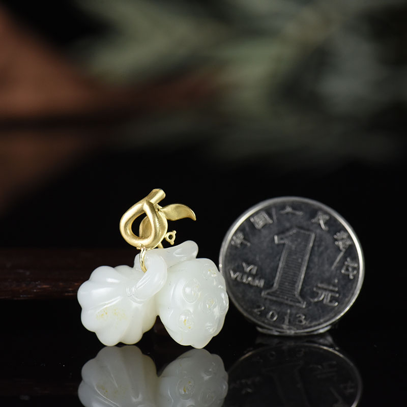 • [名  称] 18K籽料和田白玉并蒂莲吊坠