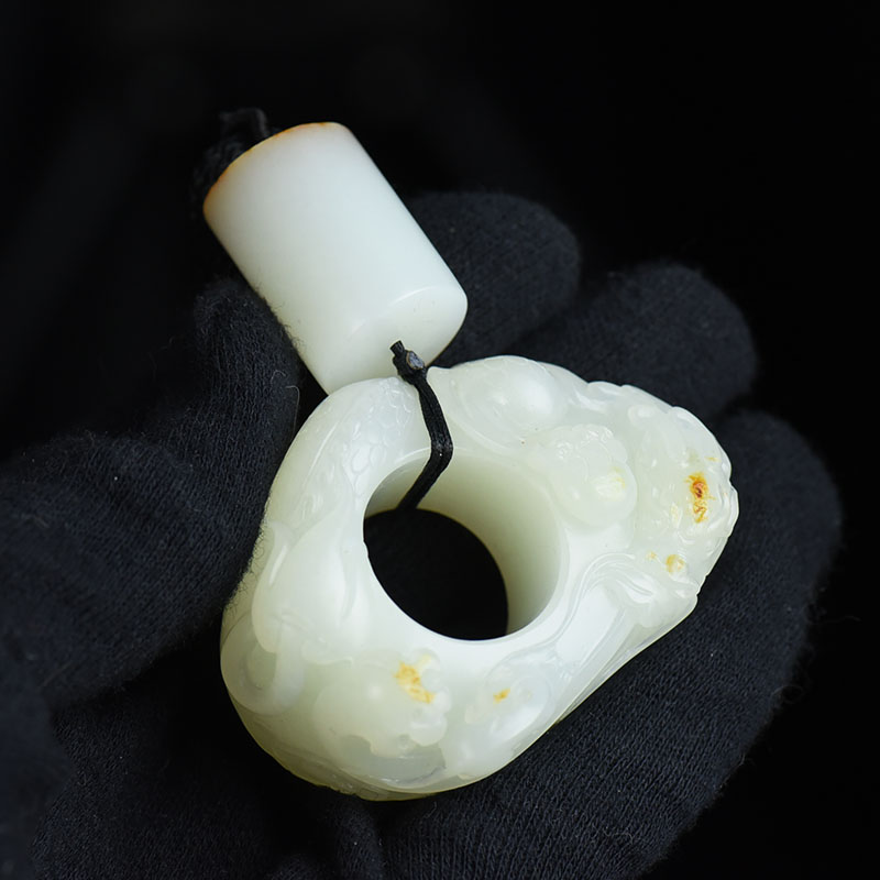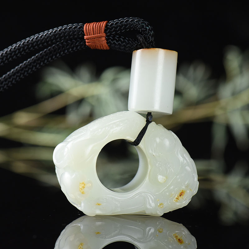 • 山流水料和田白玉飞龙在天玉琮吊坠