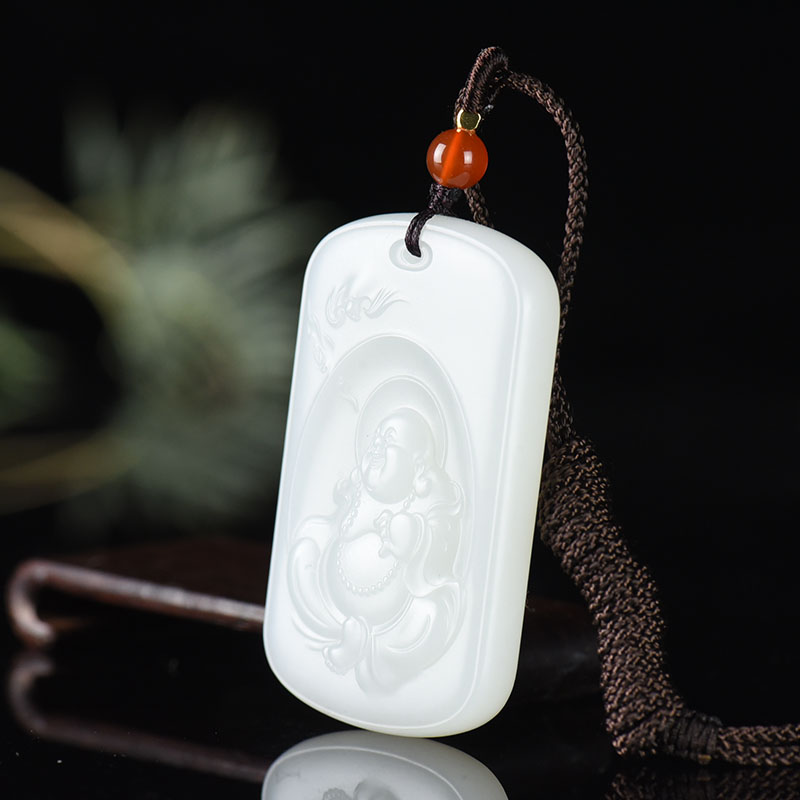 • 山流水料和田羊脂白玉弥勒佛吊坠