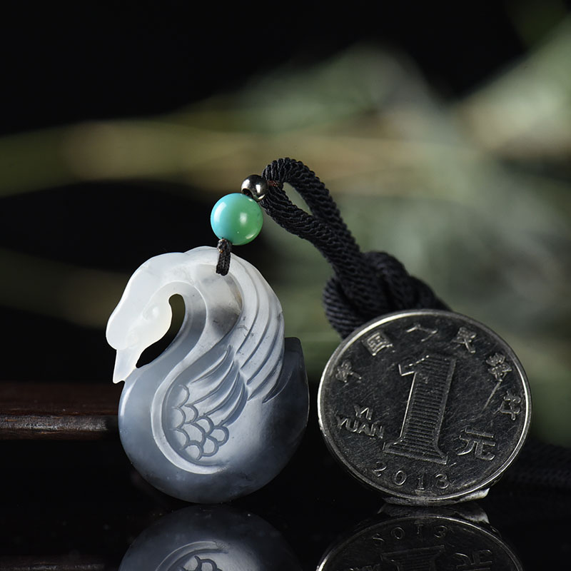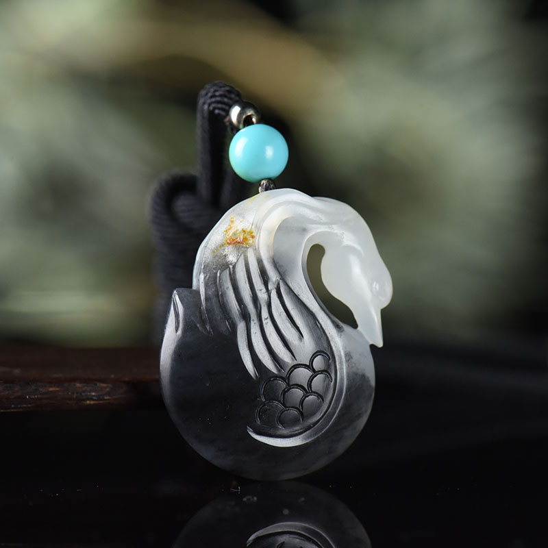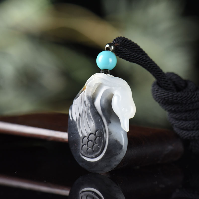 • 籽料和田玉青花天鹅吊坠
