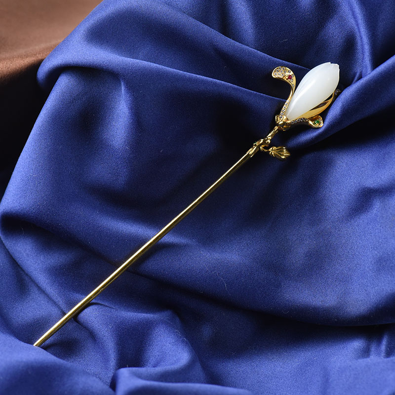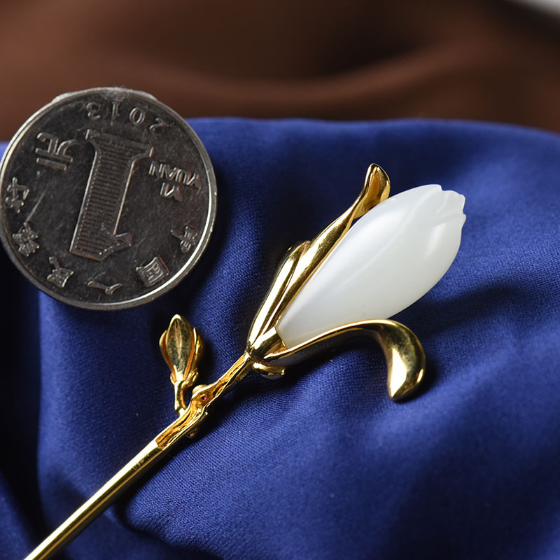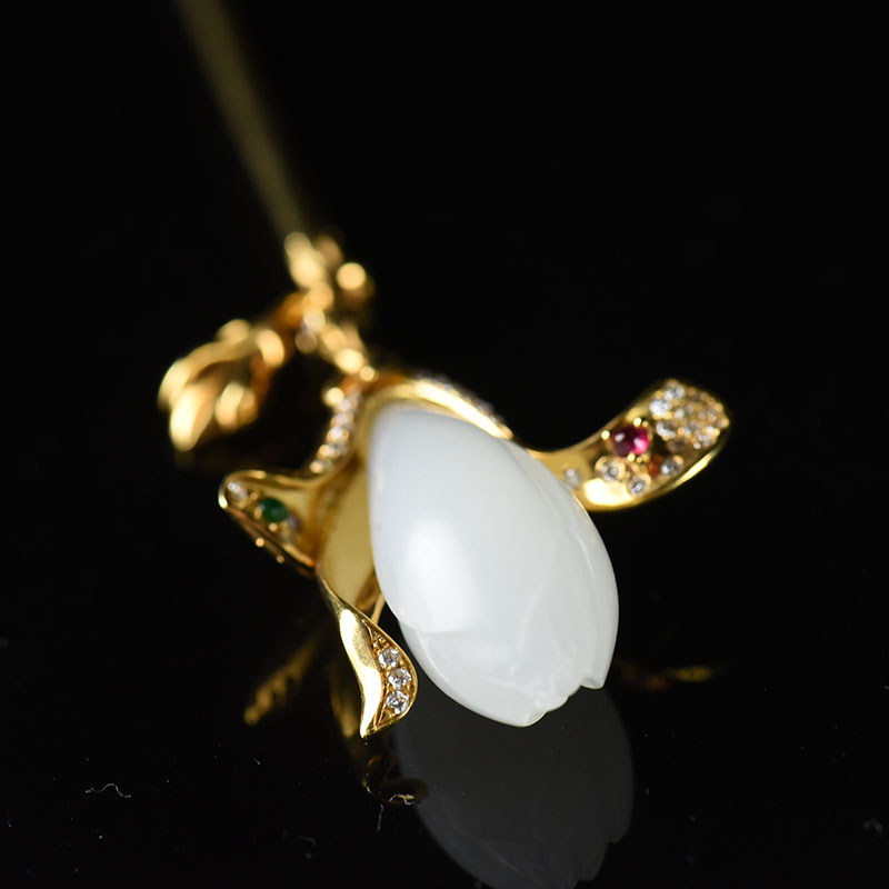 • [名  称] 18K籽料和田白玉玉兰花簪子
