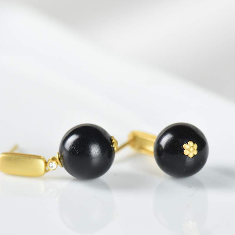 • [名  称] 18K籽料和田黑青玉耳坠
