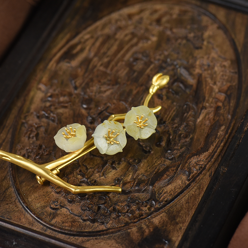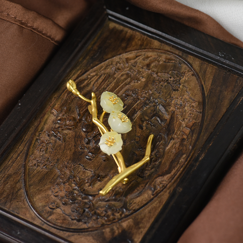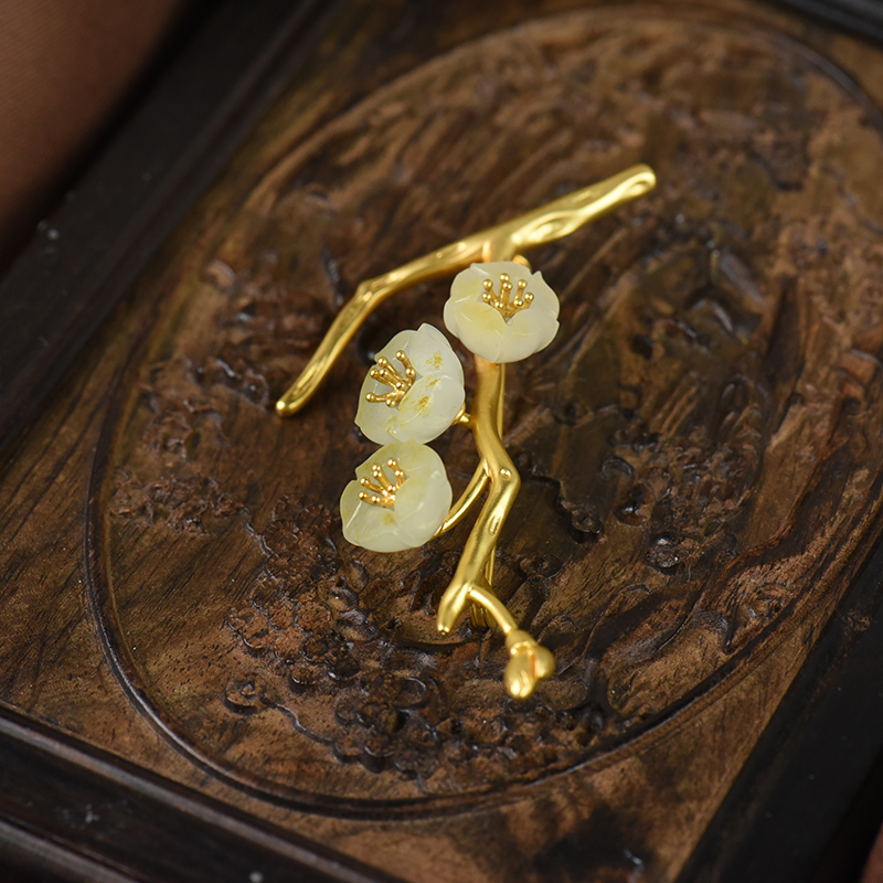 • [名  称] 18K籽料和田白玉梅花胸针/吊坠两用款