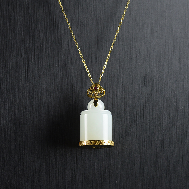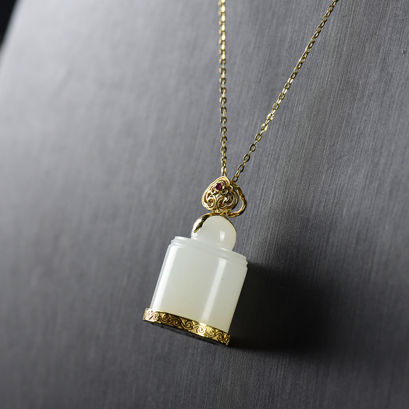 • 18K籽料和田白玉天禄印章吊坠