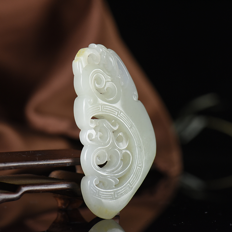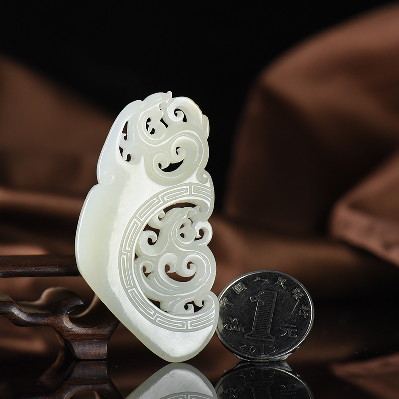 • 籽料和田白玉龙凤牌吊坠