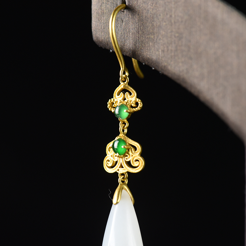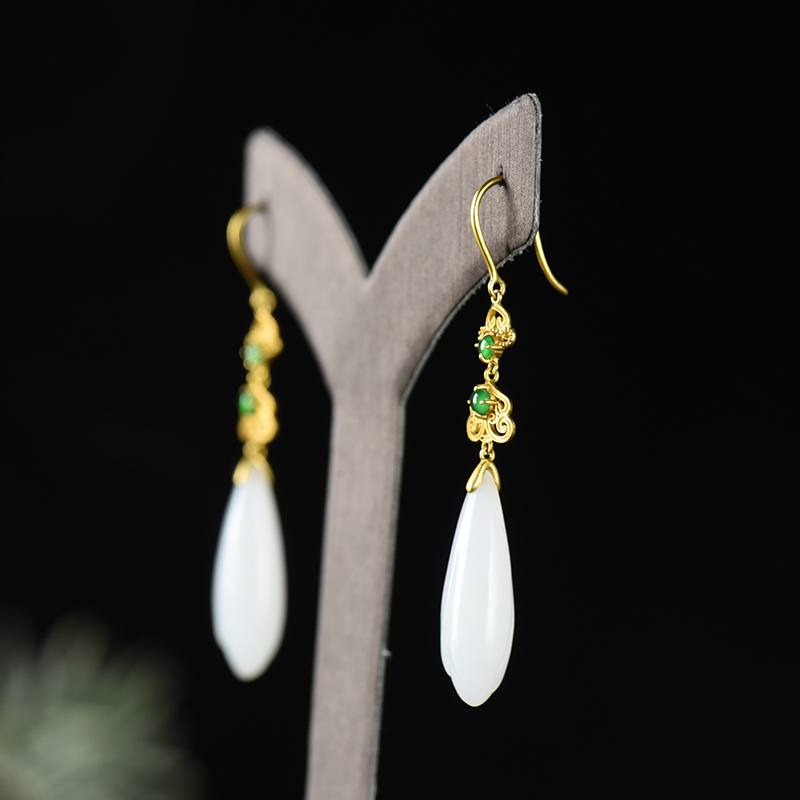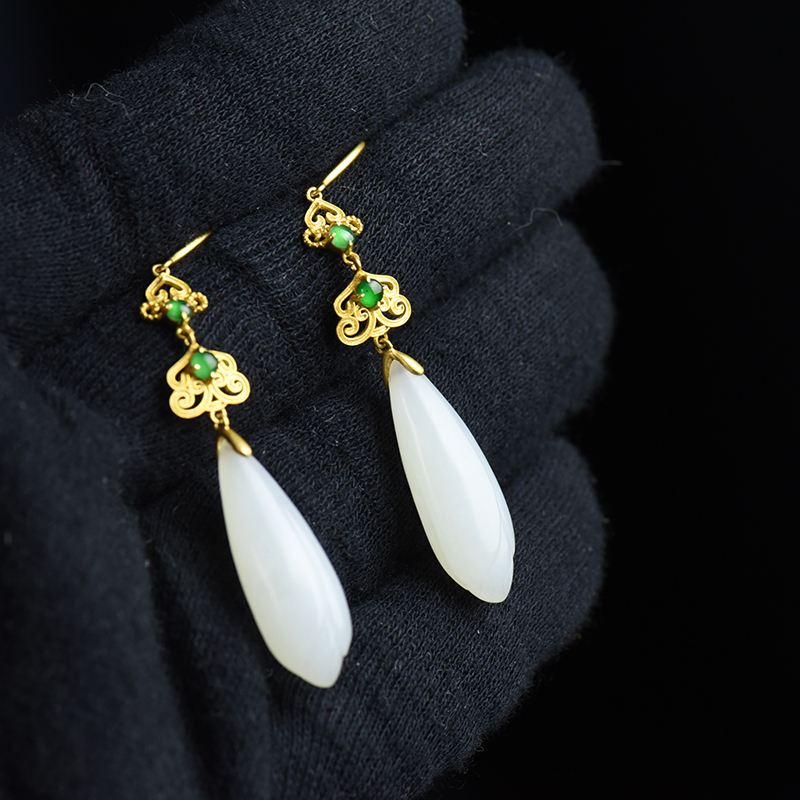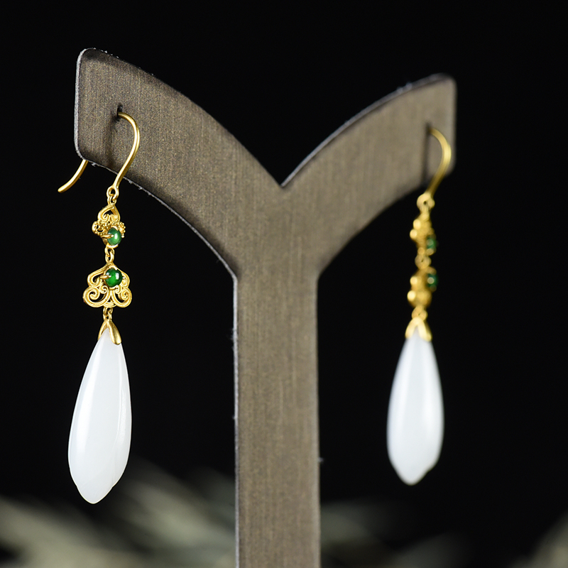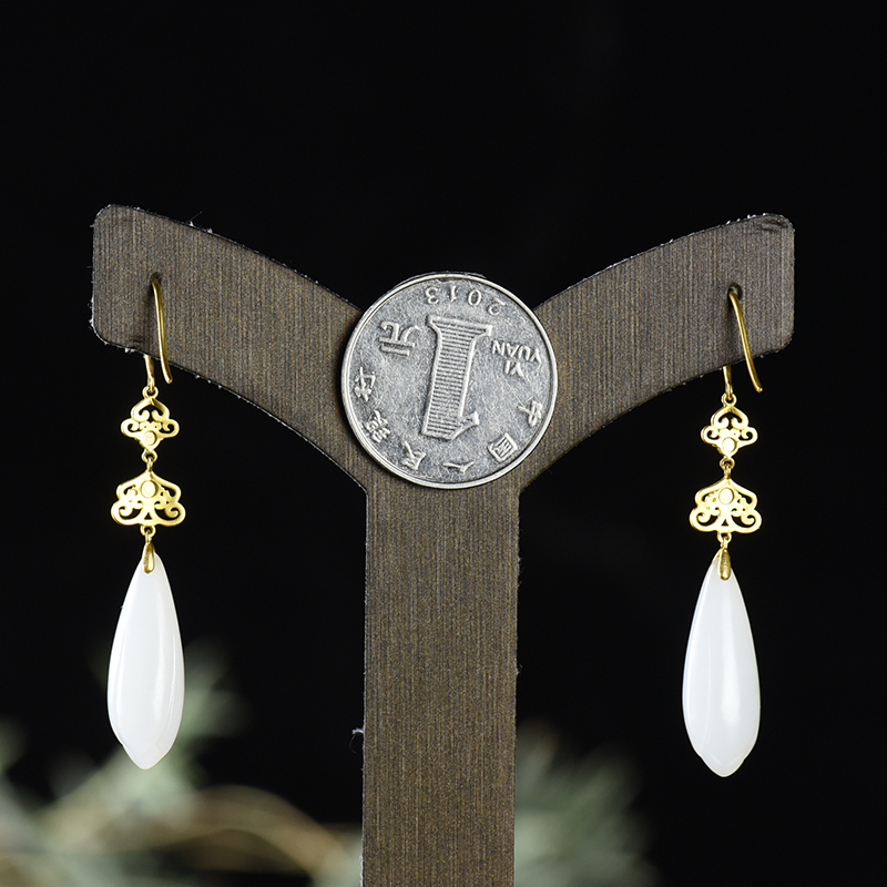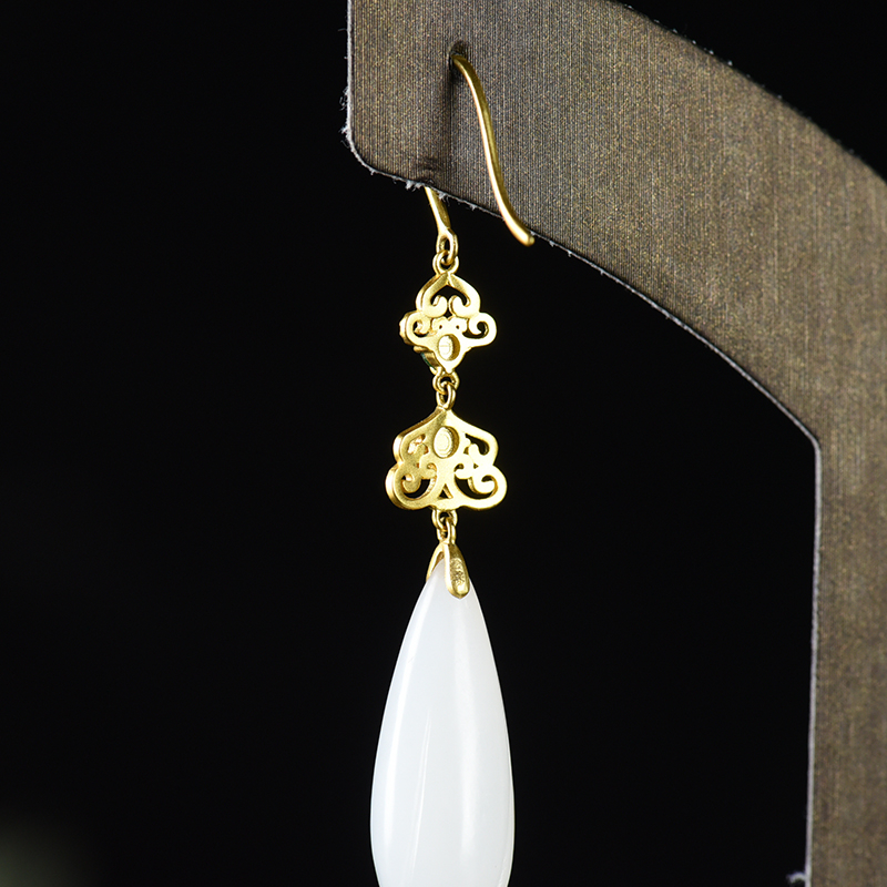 • [名  称] 18K籽料和田白玉玉兰花耳坠