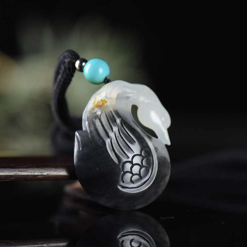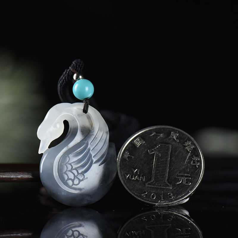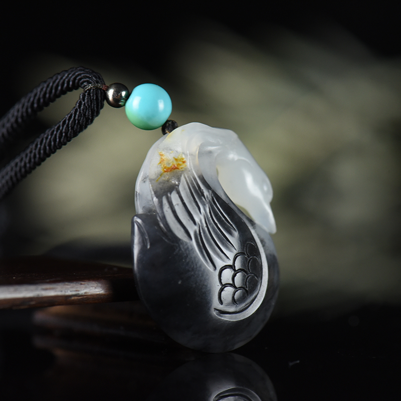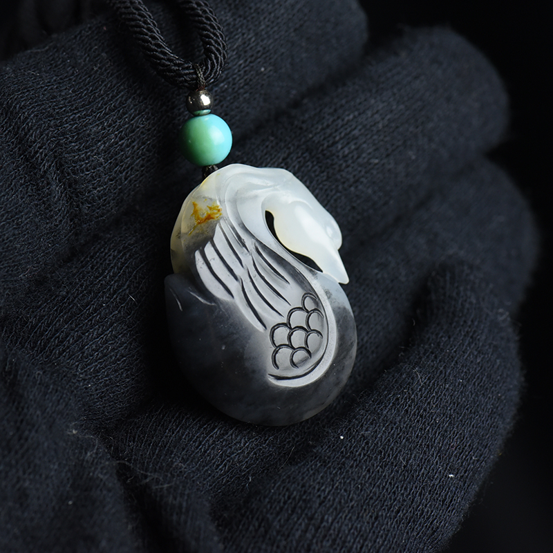 • [名  称] 籽料和田玉青花鹅如意吊坠