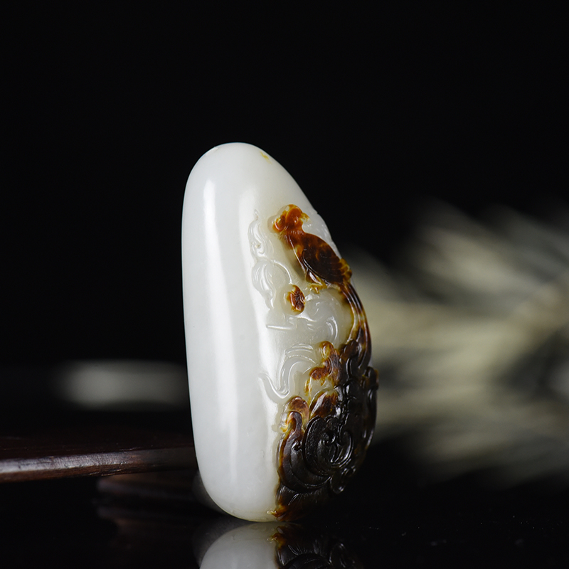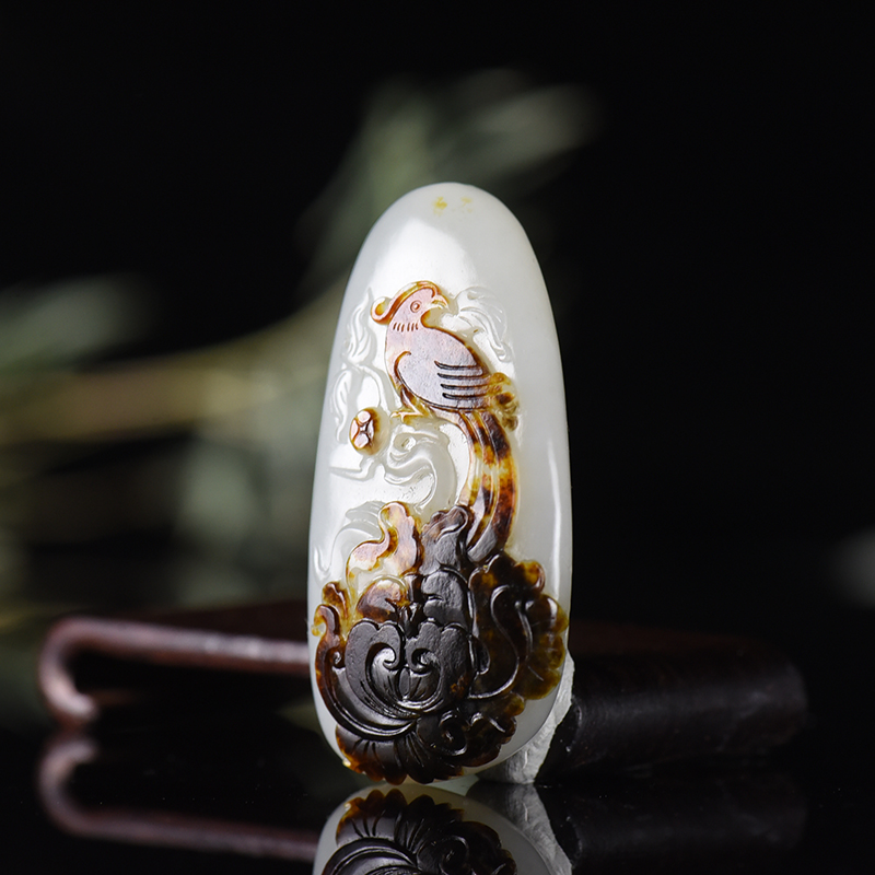 • [名  称] 籽料和田玉黑皮料凤穿牡丹吊坠