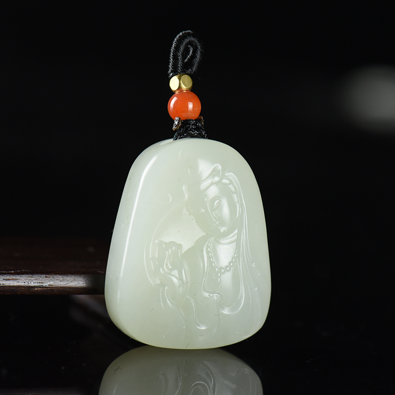 • 籽料和田白玉观音吊坠