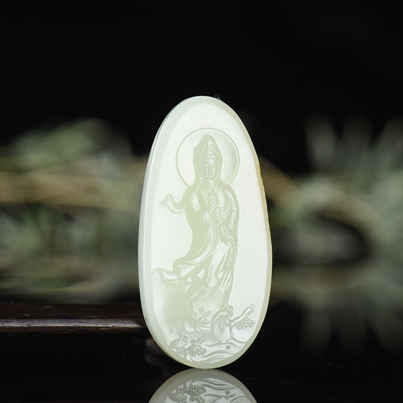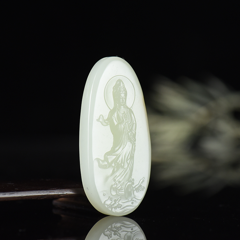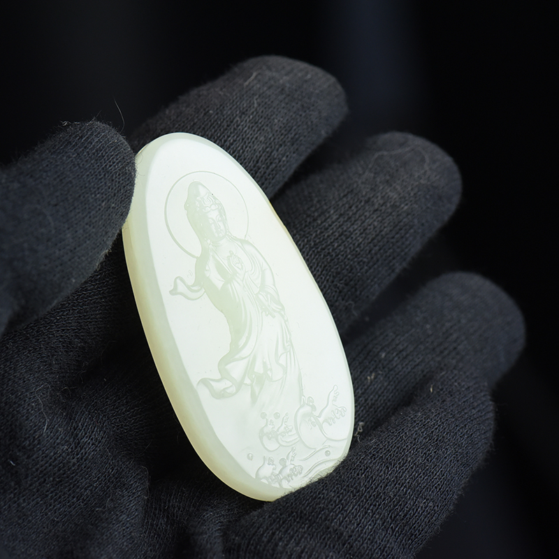 • 籽料和田白玉观音吊坠