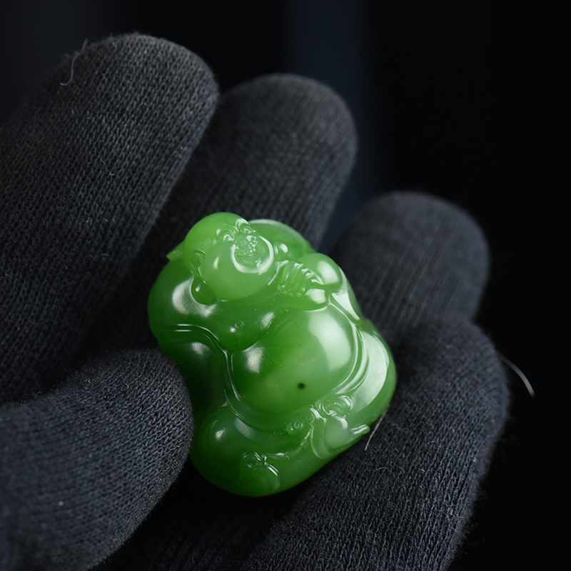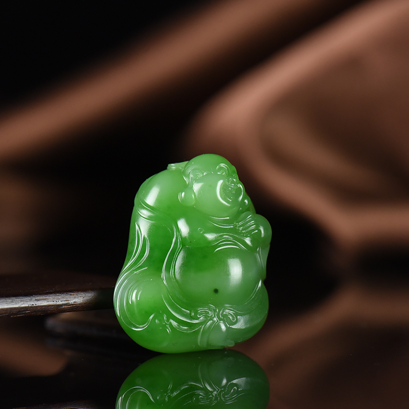 • 山料和田碧玉弥勒佛吊坠