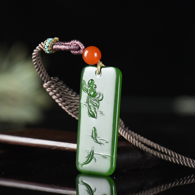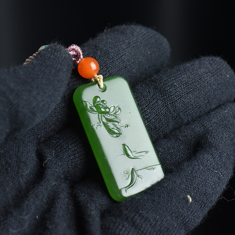 • 山料和田碧玉荷趣吊坠