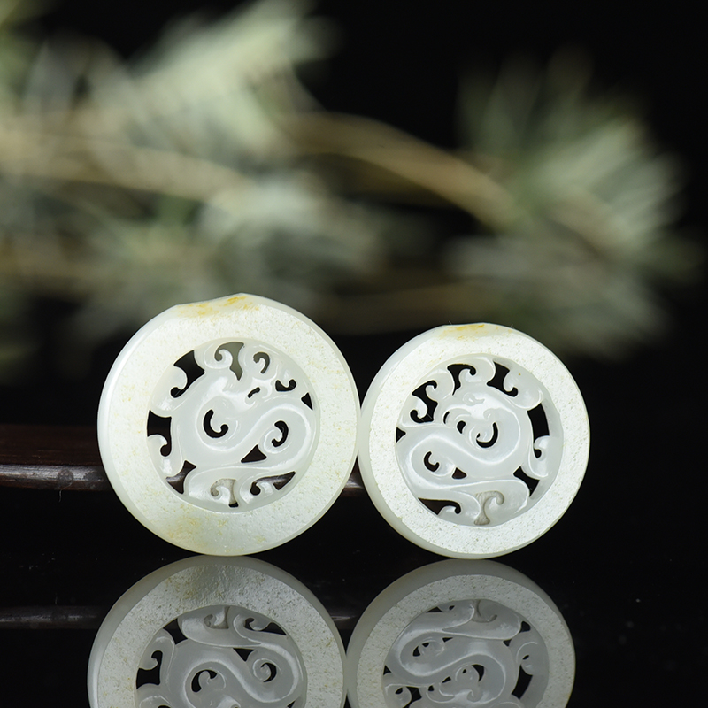 • [名  称] 籽料和田白玉龙凤吊坠(二件)