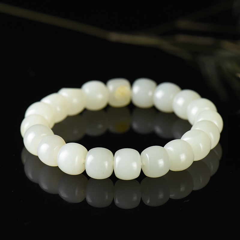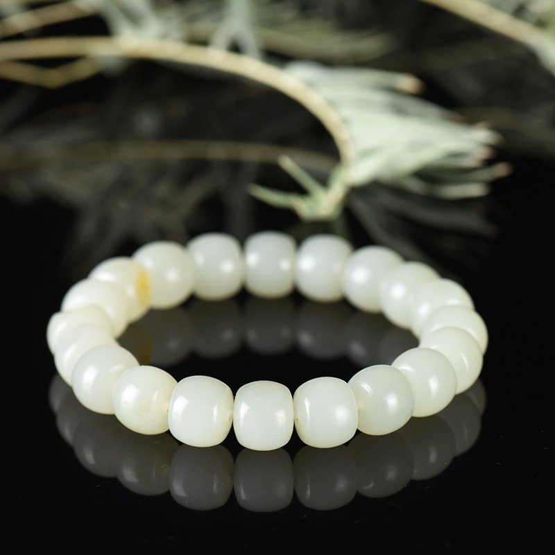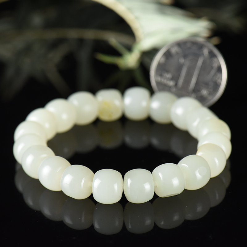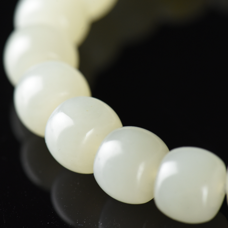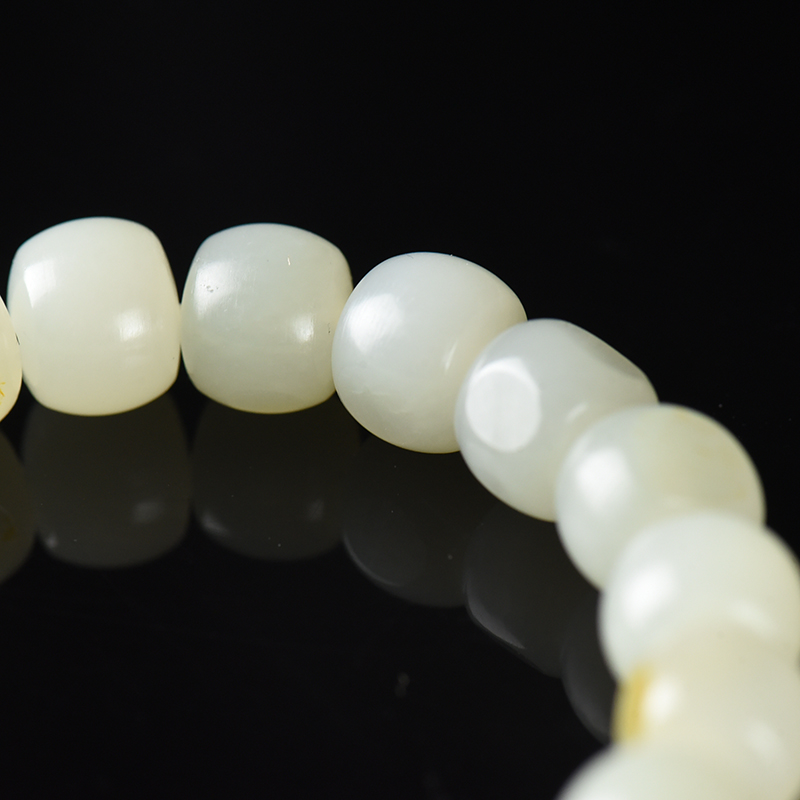• [名  称] 籽料和田白玉老形珠单圈手串