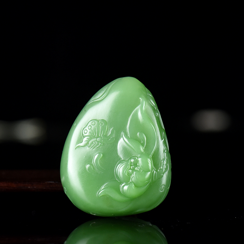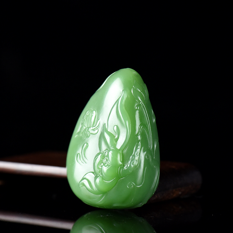• 山料和田碧玉荷花吊坠
