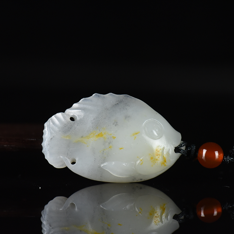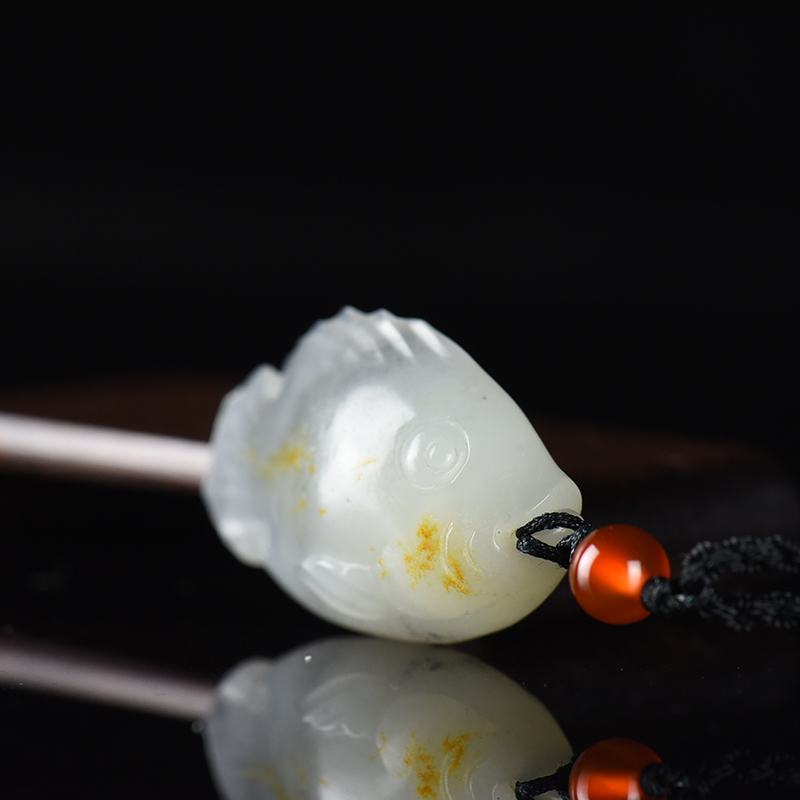 • 籽料和田玉青花年年有余吊坠