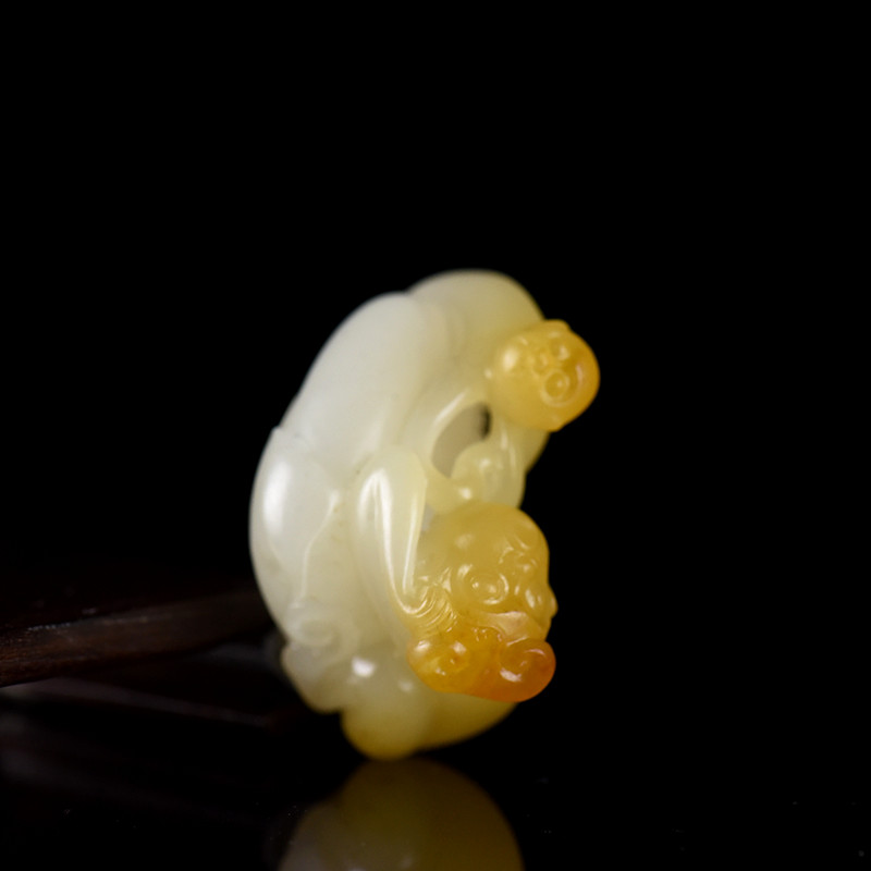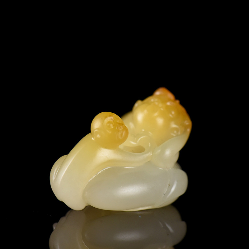 • 籽料和田白玉母子情深吊坠