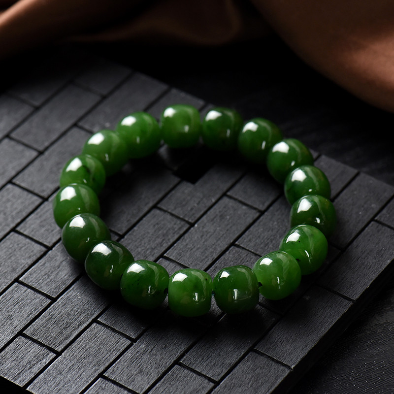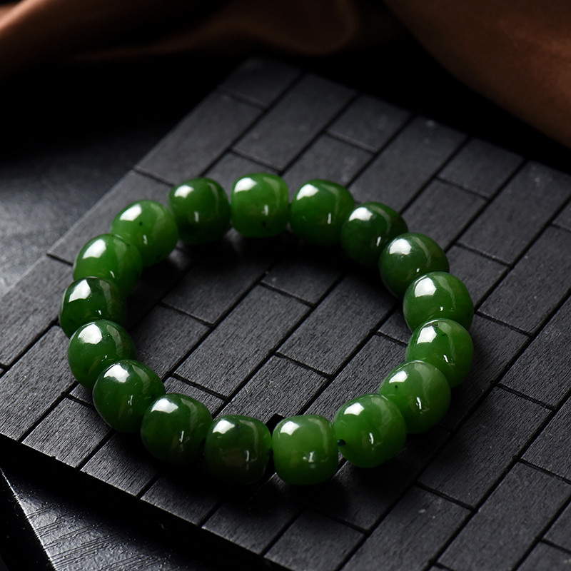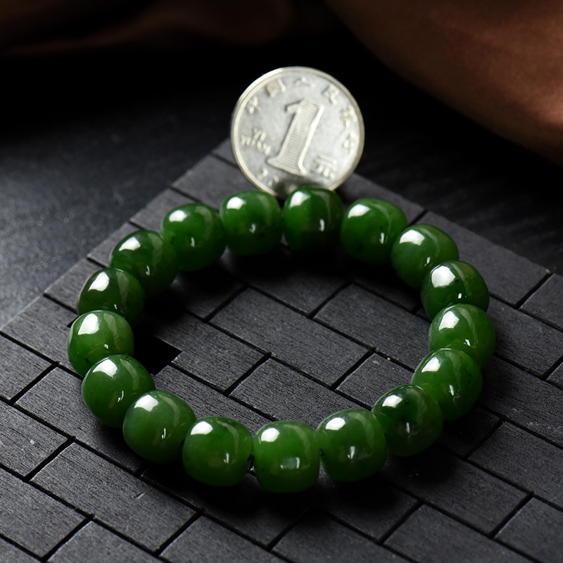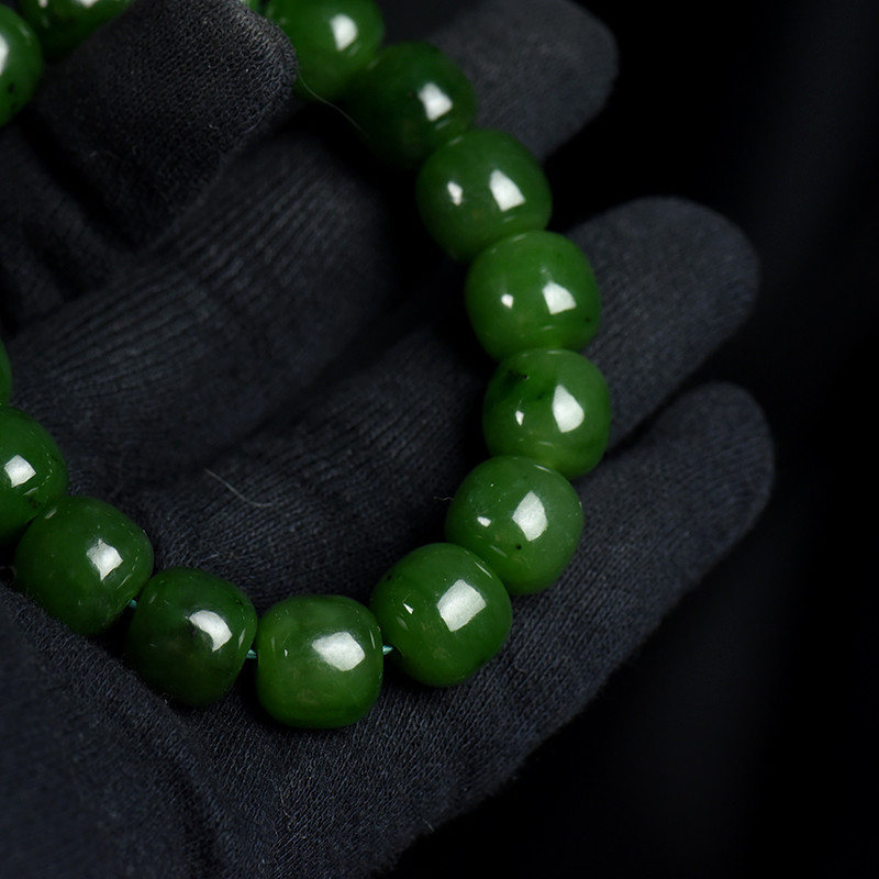 • 山料和田碧玉老形珠单圈手串