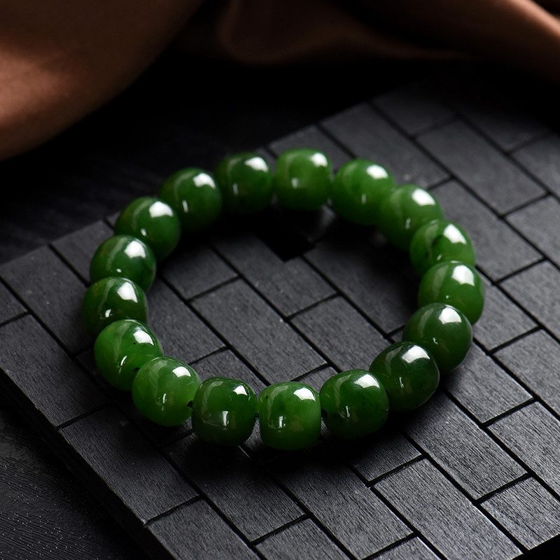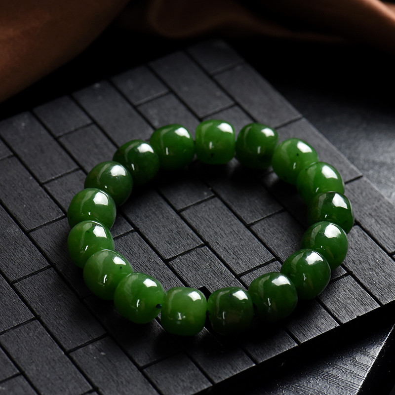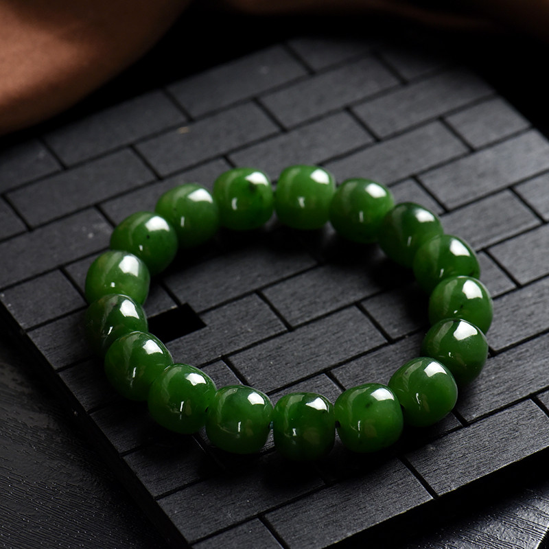 • 山料和田碧玉老形珠单圈手串