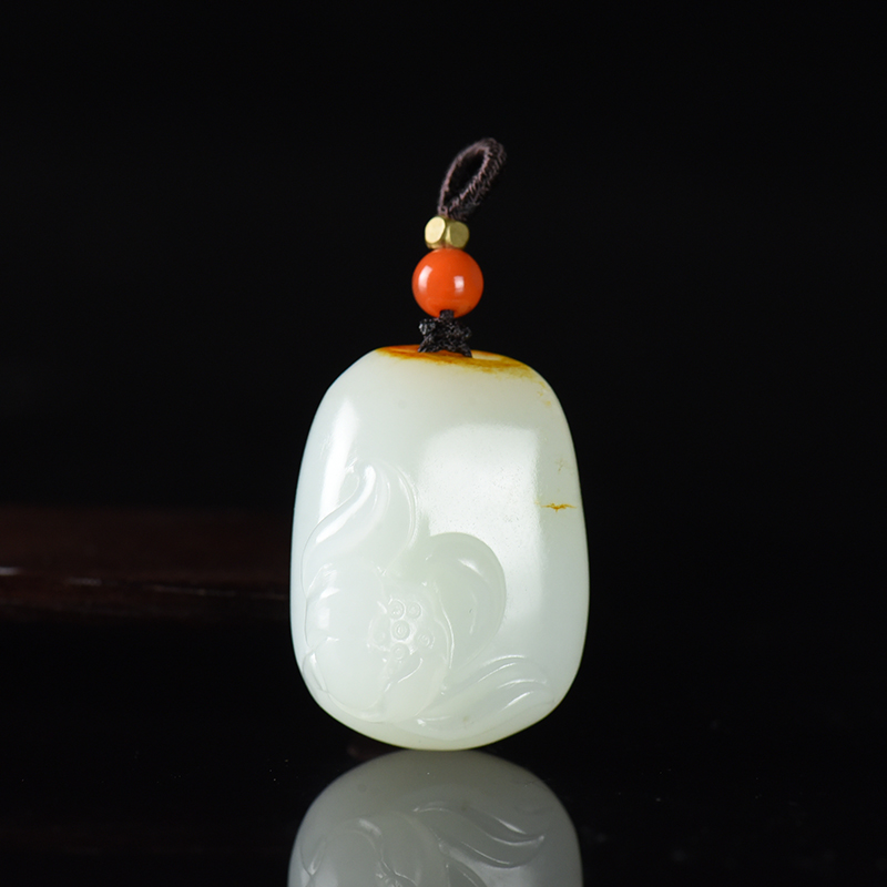 • 籽料和田白玉荷花吊坠