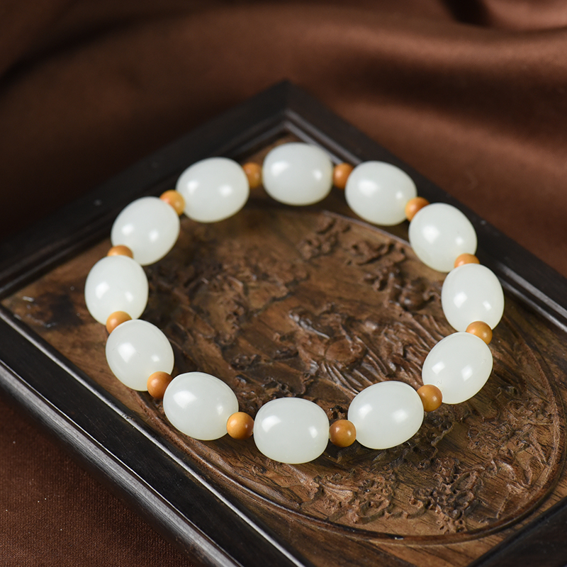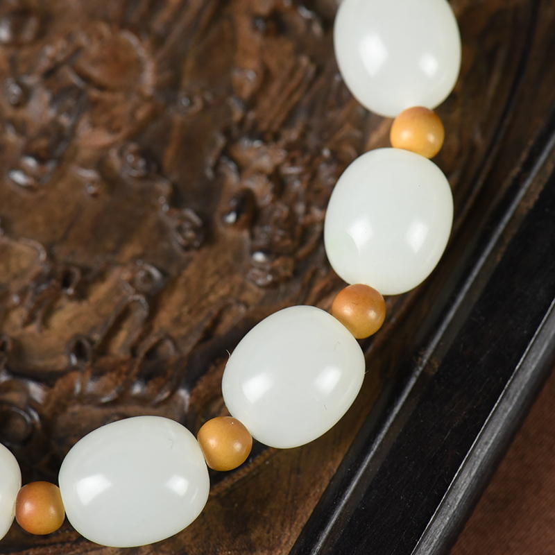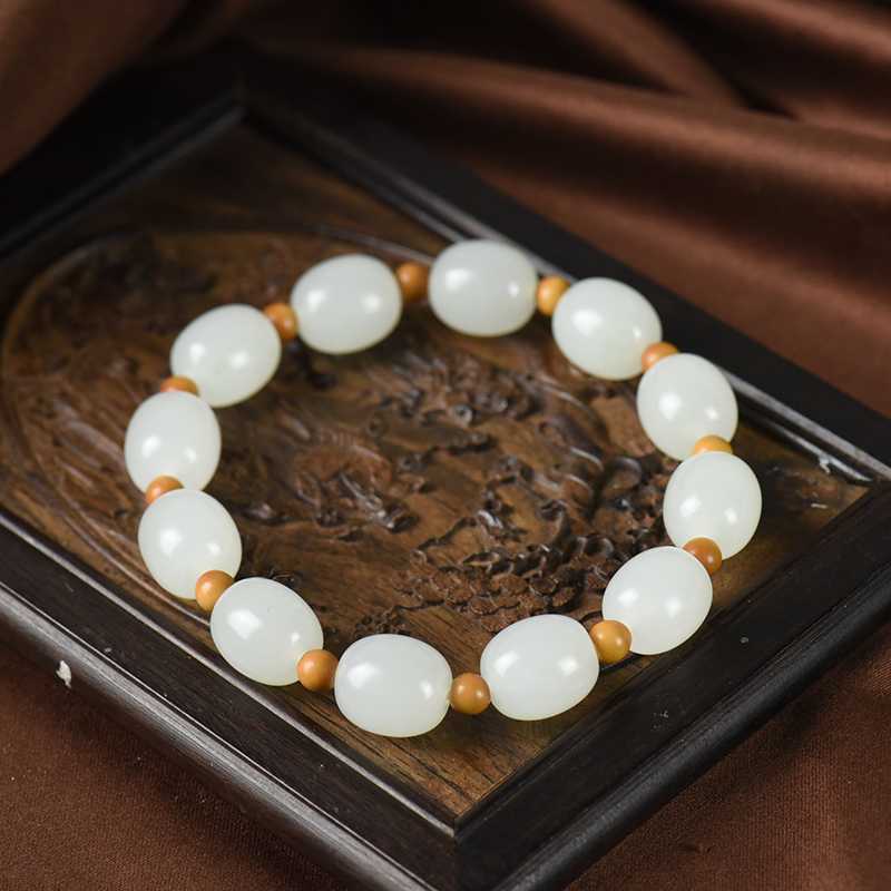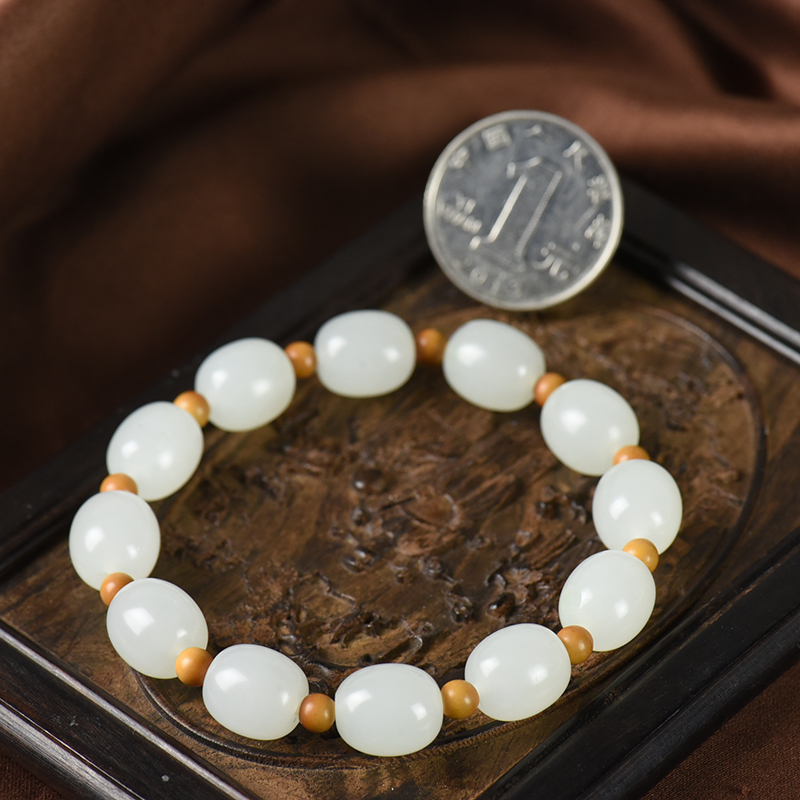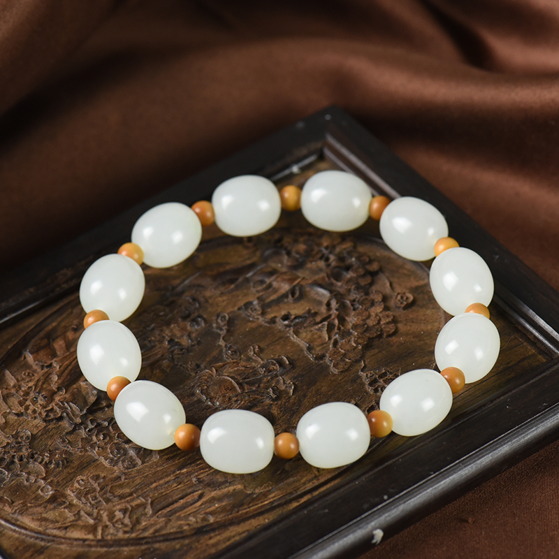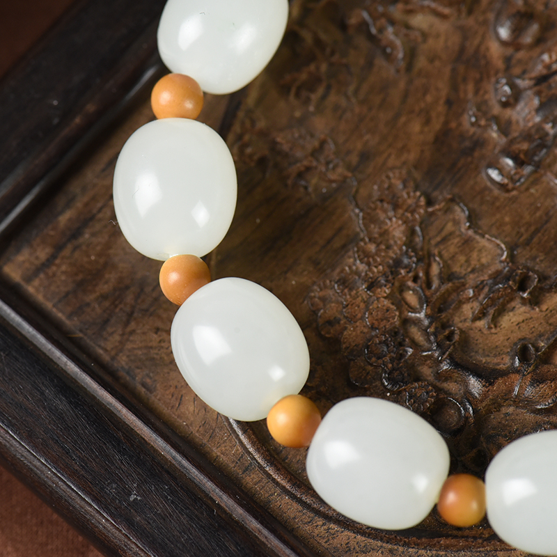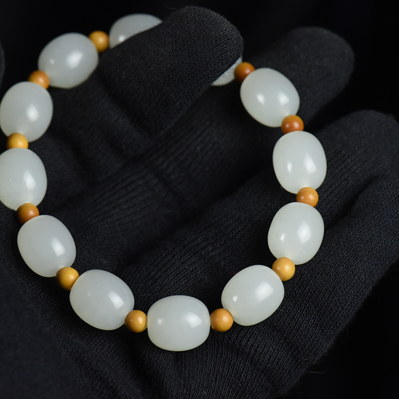• [名  称] 山流水料和田白玉桶珠单圈手串