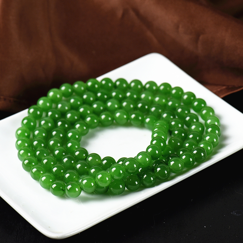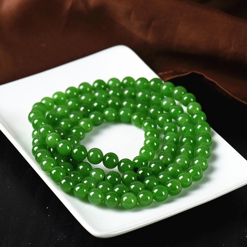• 7.5mm山料和田碧玉苹果绿108佛珠