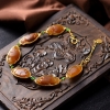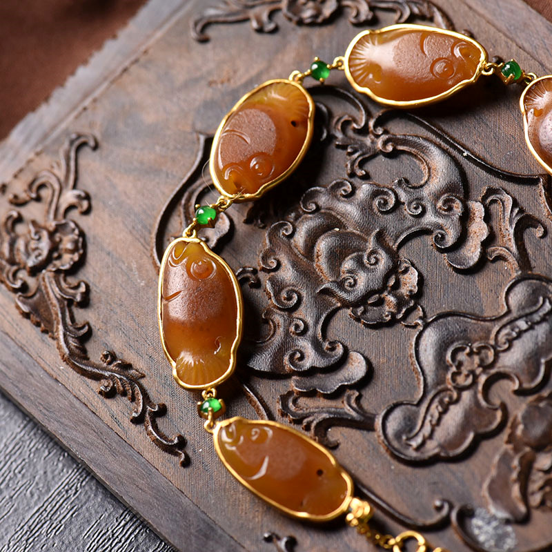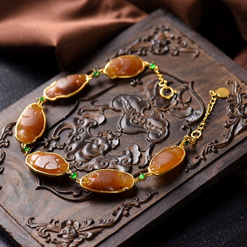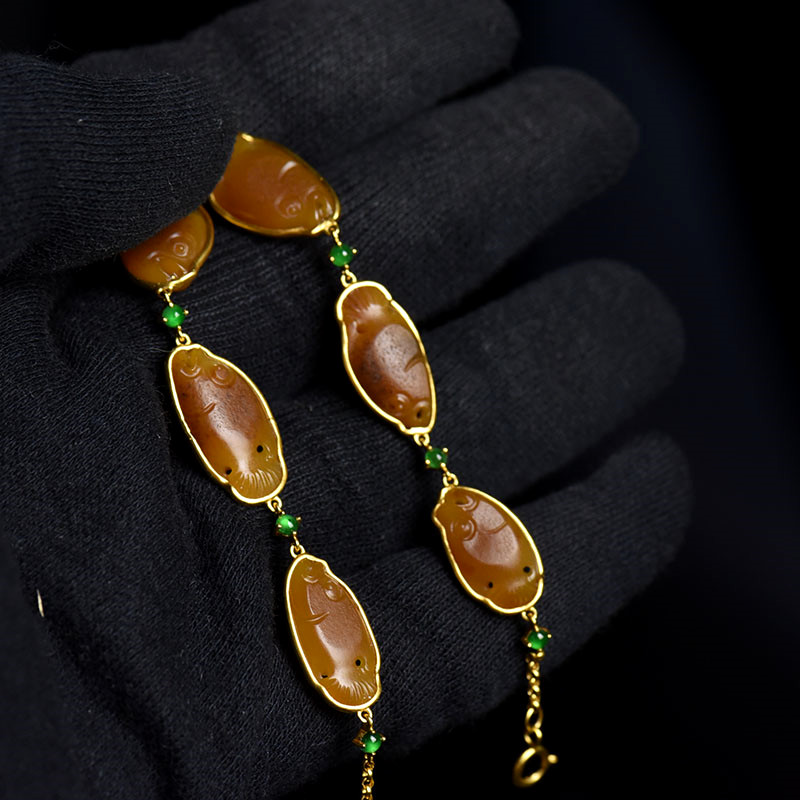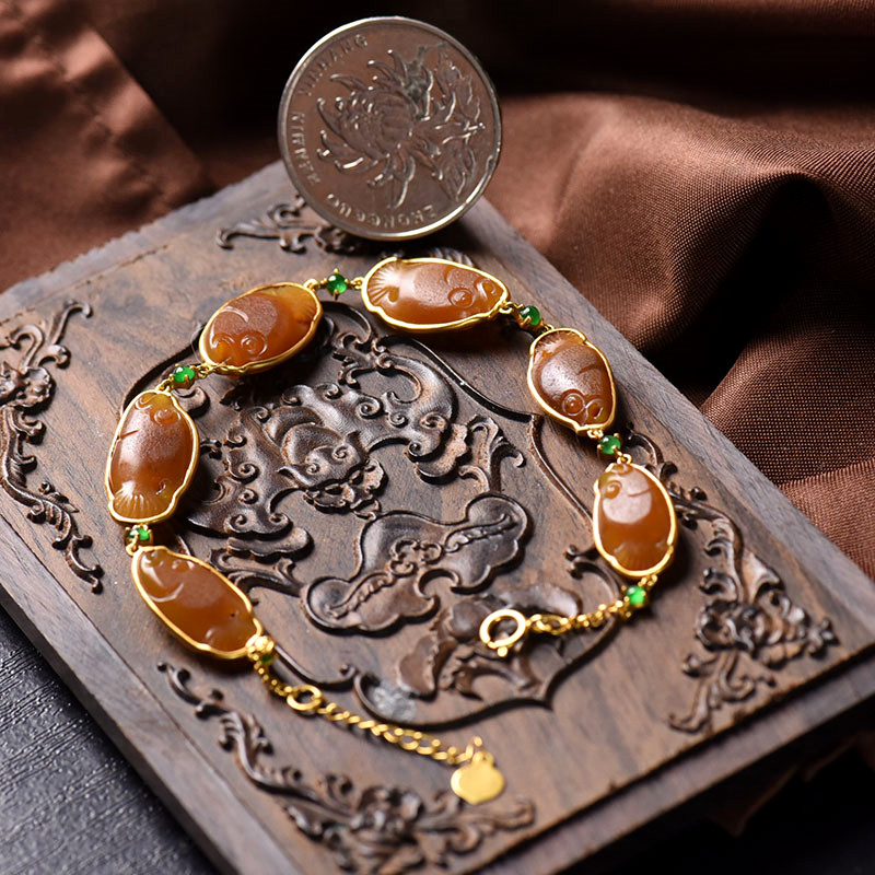 • 18K籽料和田玉黄沁年年有余手链