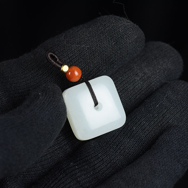 • 籽料和田白玉方平安扣吊坠