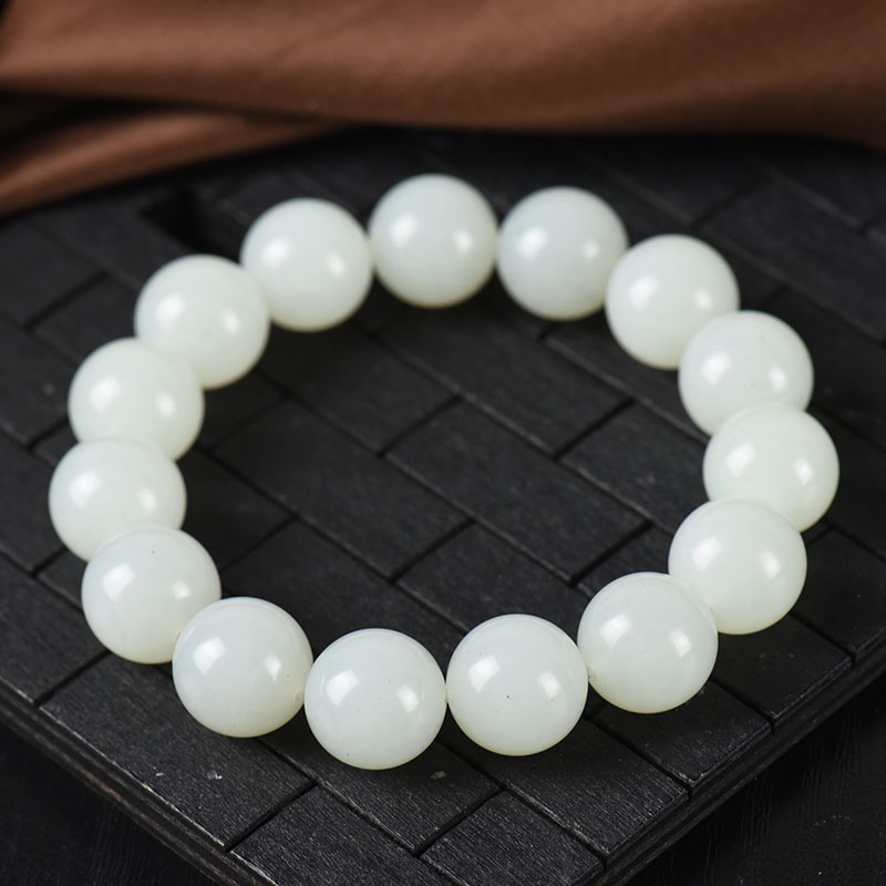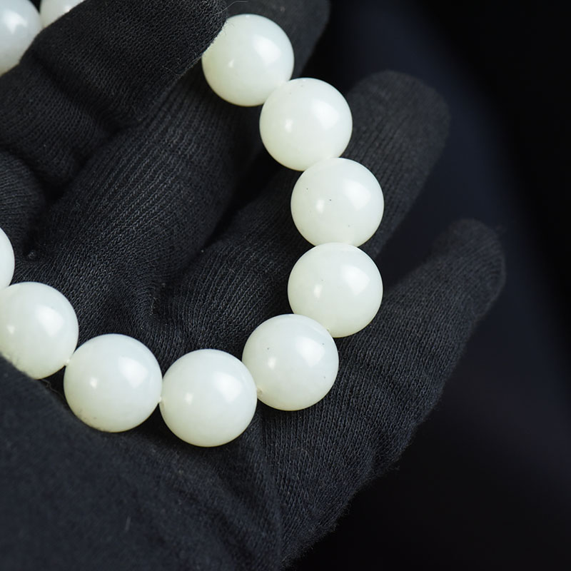 • 14mm籽料和田白玉单圈手串
