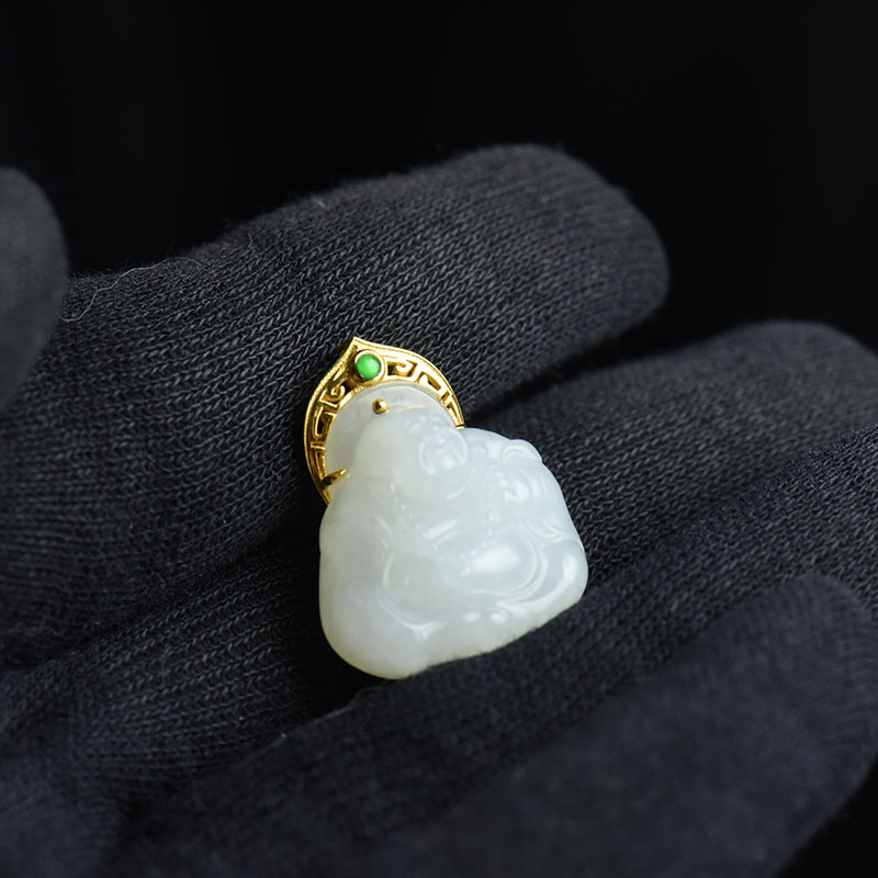 • [名  称] 18K籽料和田白玉弥勒佛吊坠