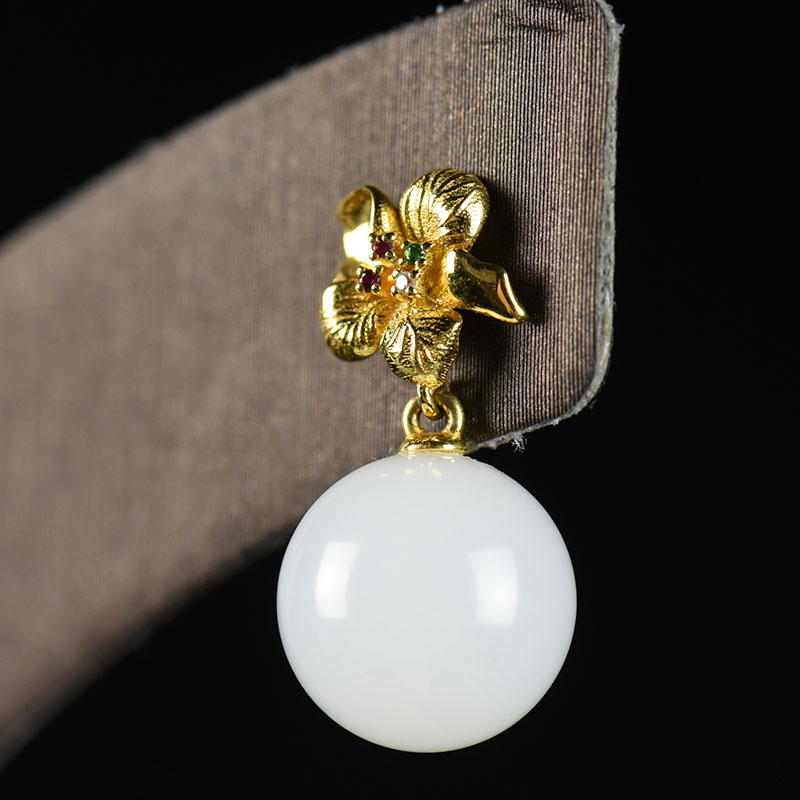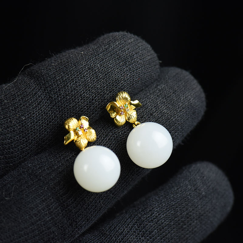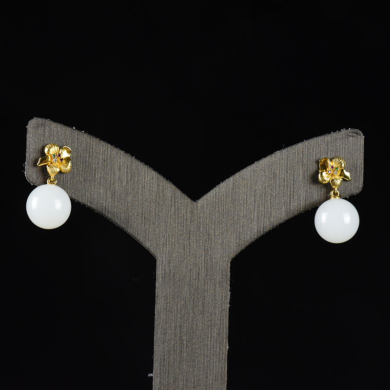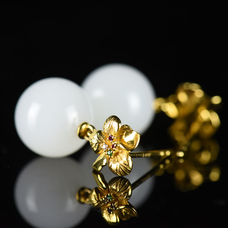 • 18K籽料和田白玉繁花耳坠