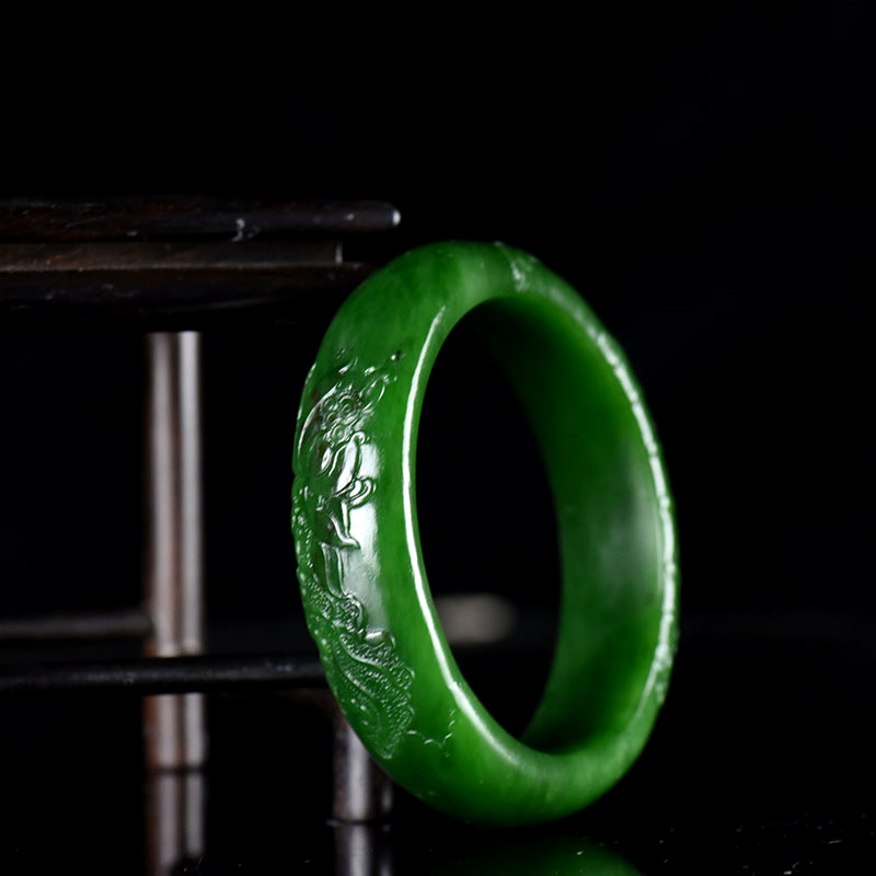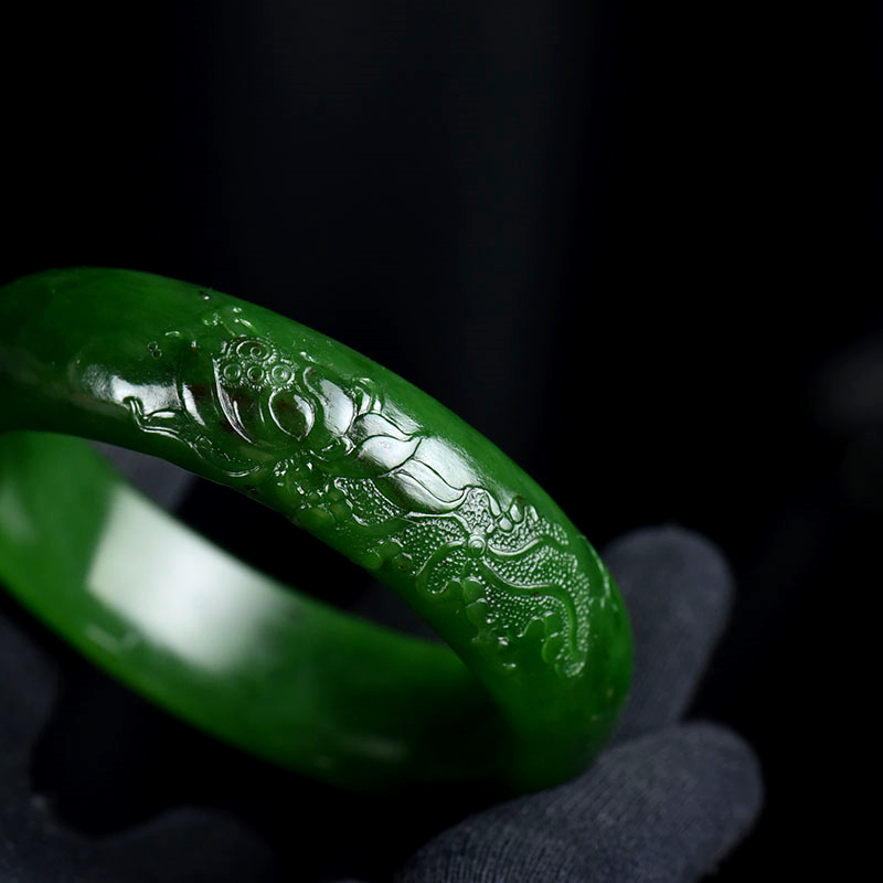 • [名  称] 57mm山料和田碧玉荷塘清趣手镯