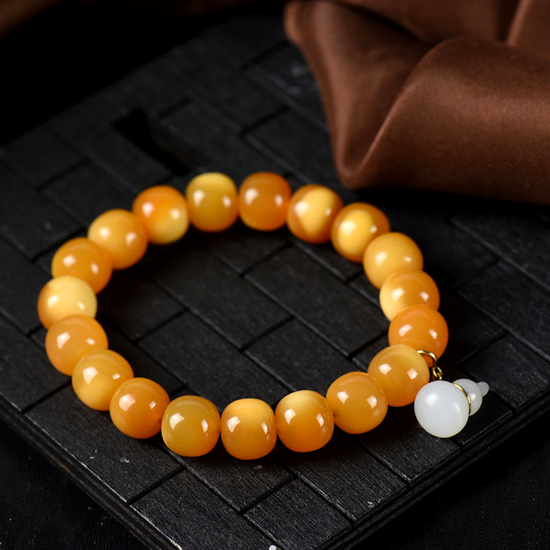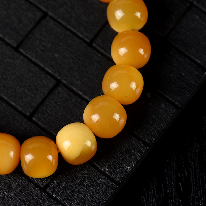 • [名  称] 山料鸡油黄黄龙玉老形珠单圈手串