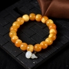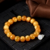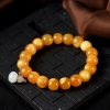 • 山料鸡油黄黄龙玉老形珠单圈手串