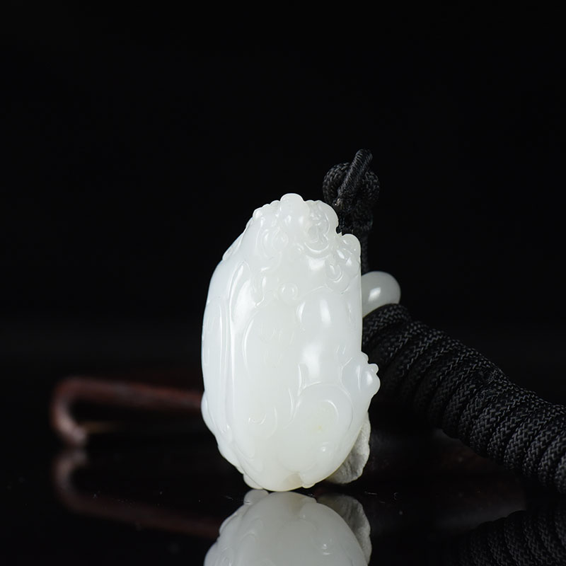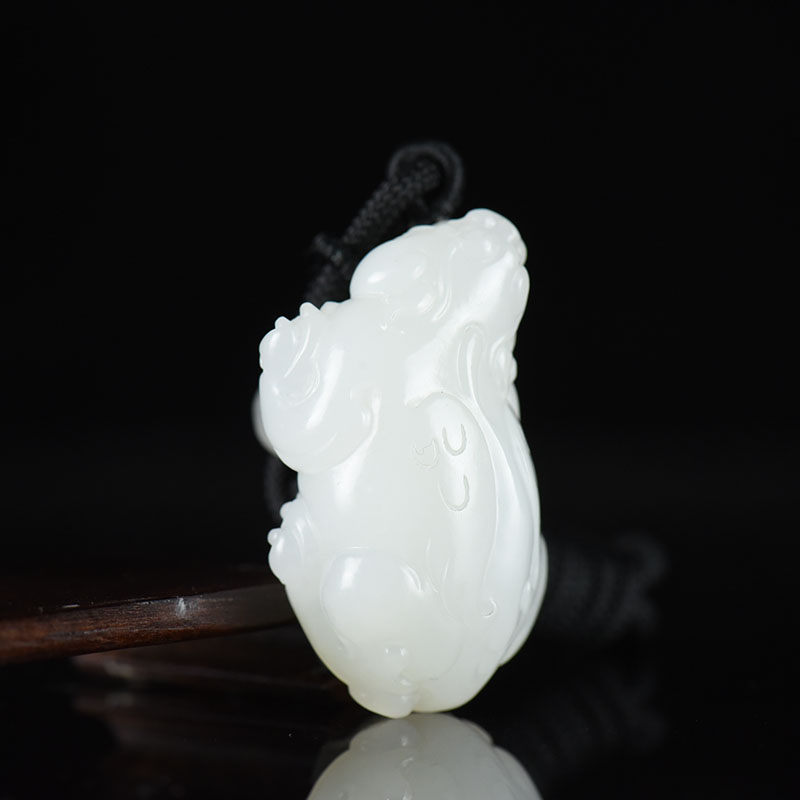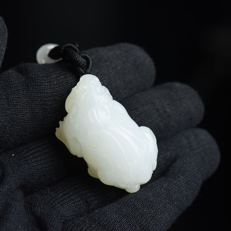 • 山流水料和田白玉貔貅吊坠