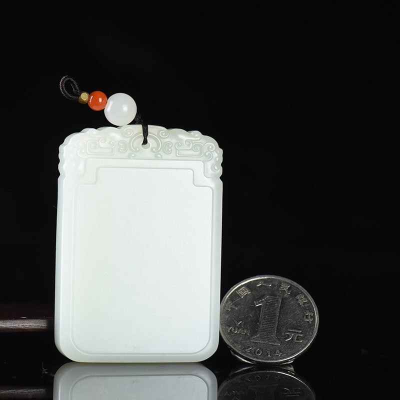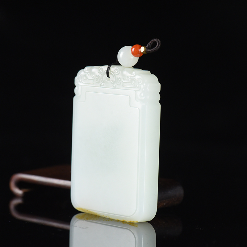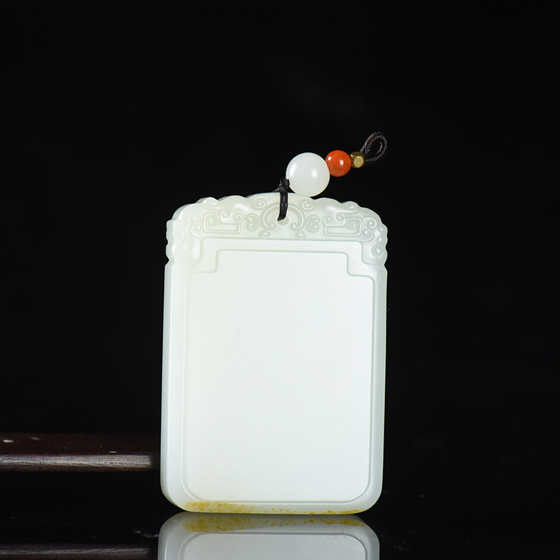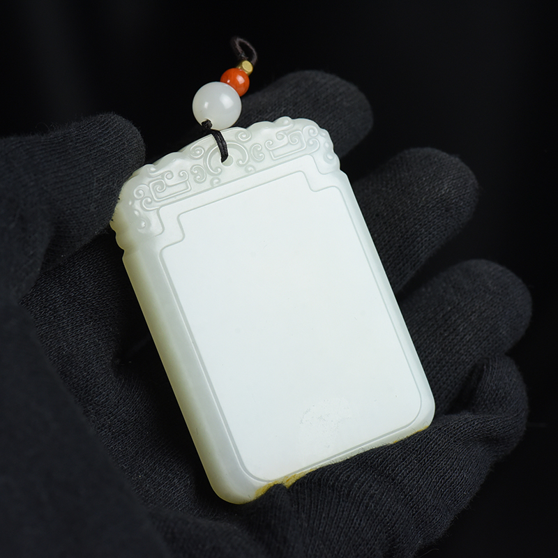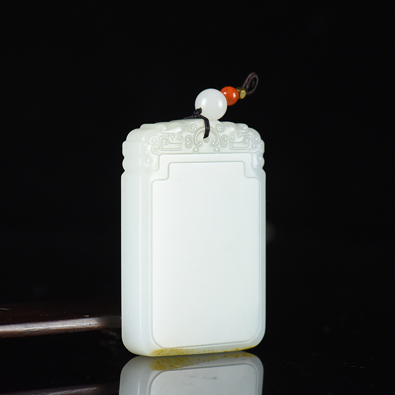 • 籽料和田白玉无事牌吊坠