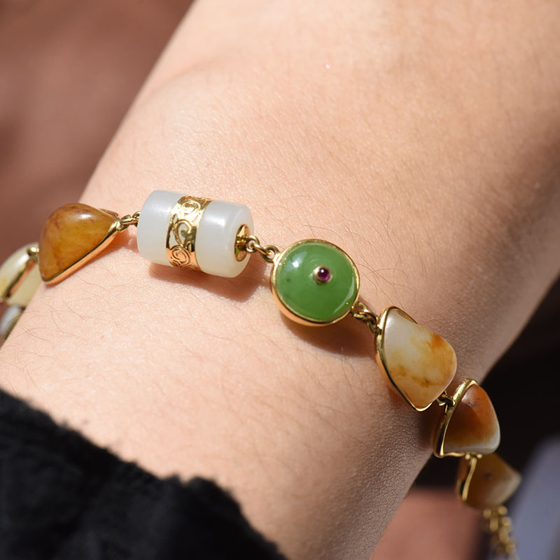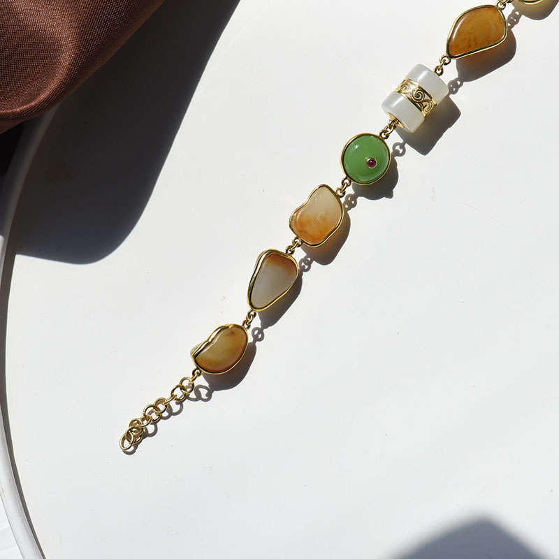 • 18K籽料和田玉原石手链