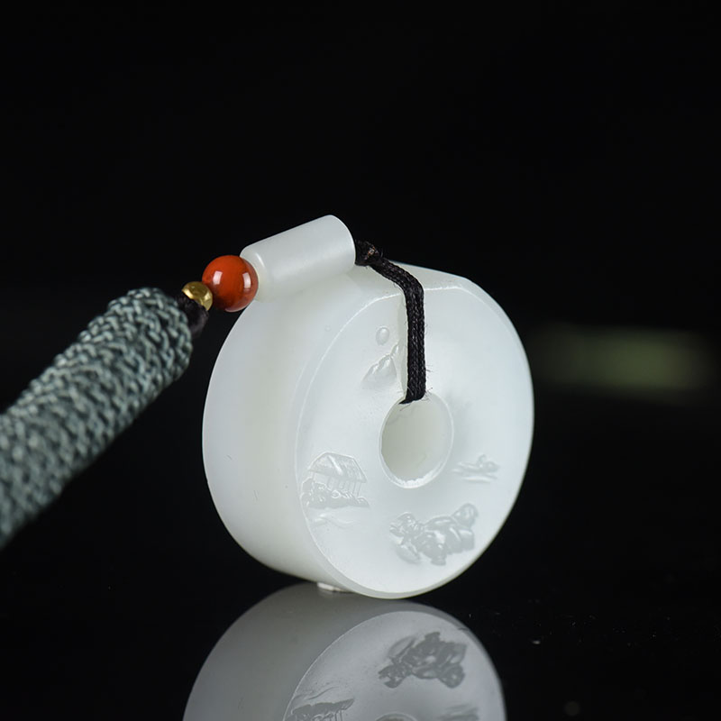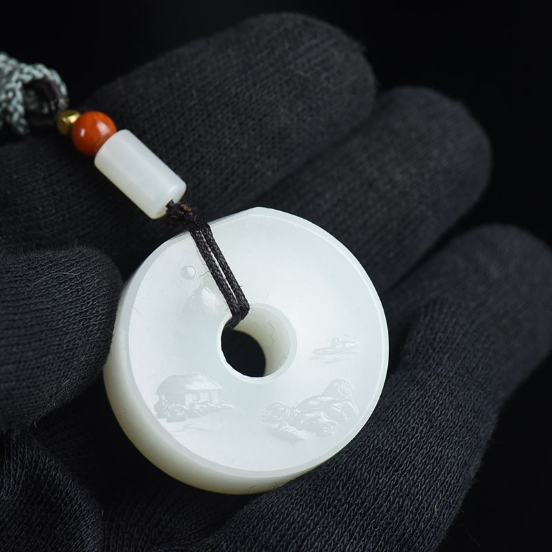 • [名  称] 籽料和田白玉山水平安扣吊坠