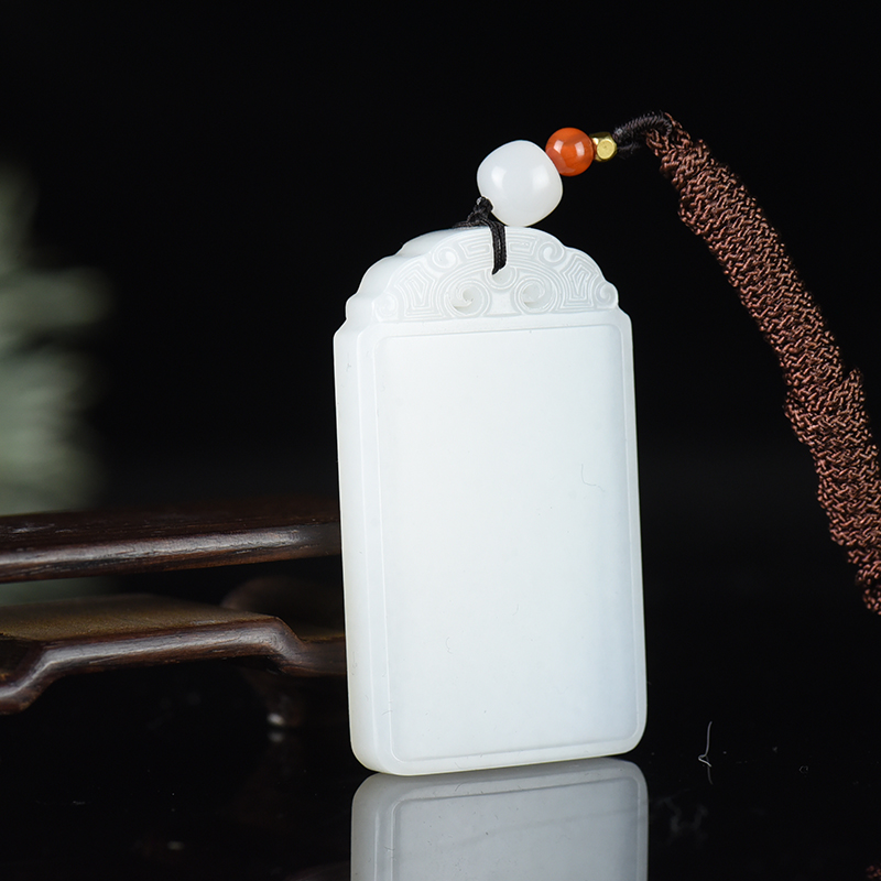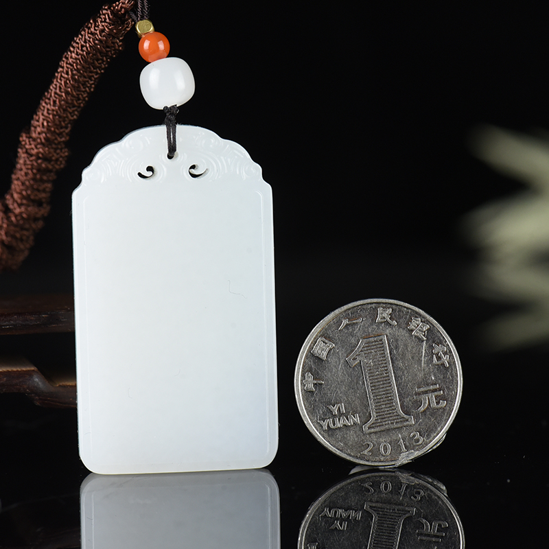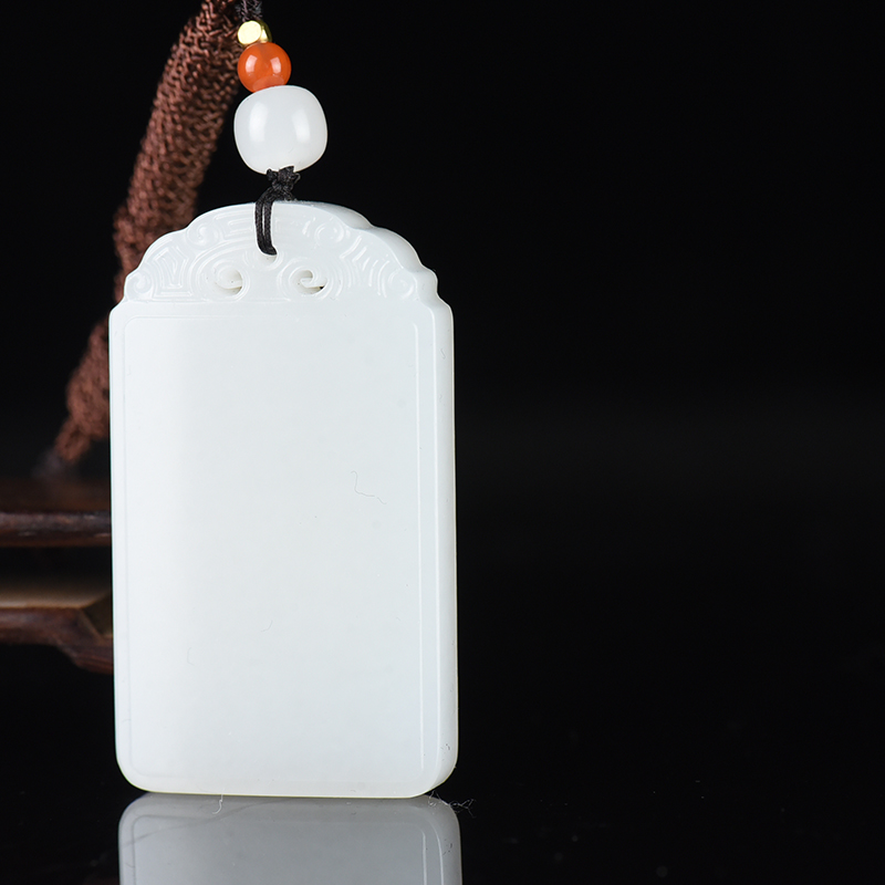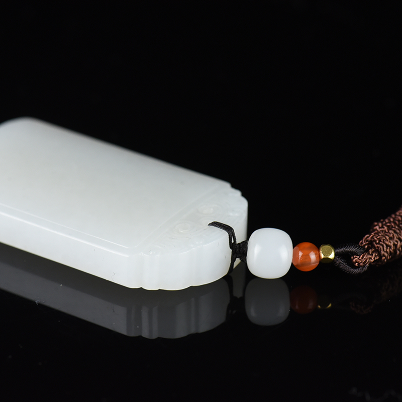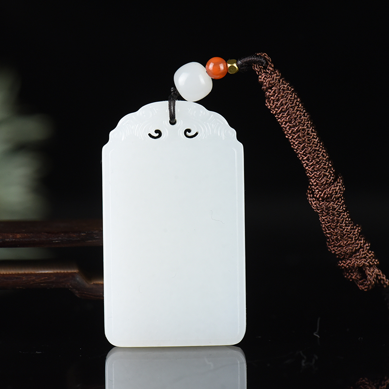 • 籽料和田白玉无事牌吊坠