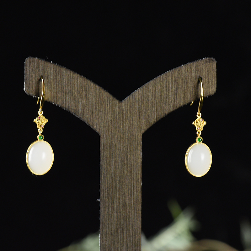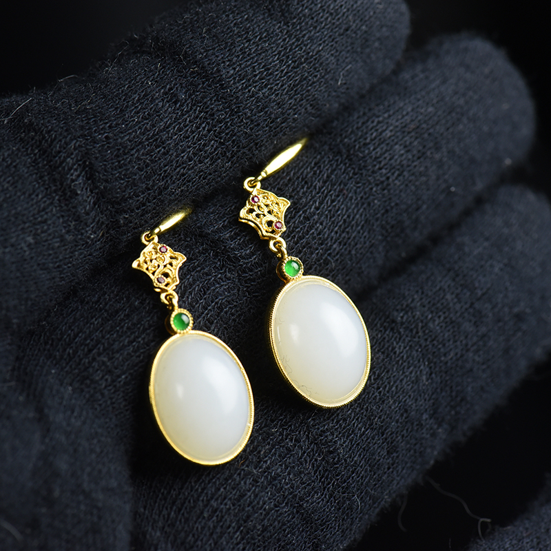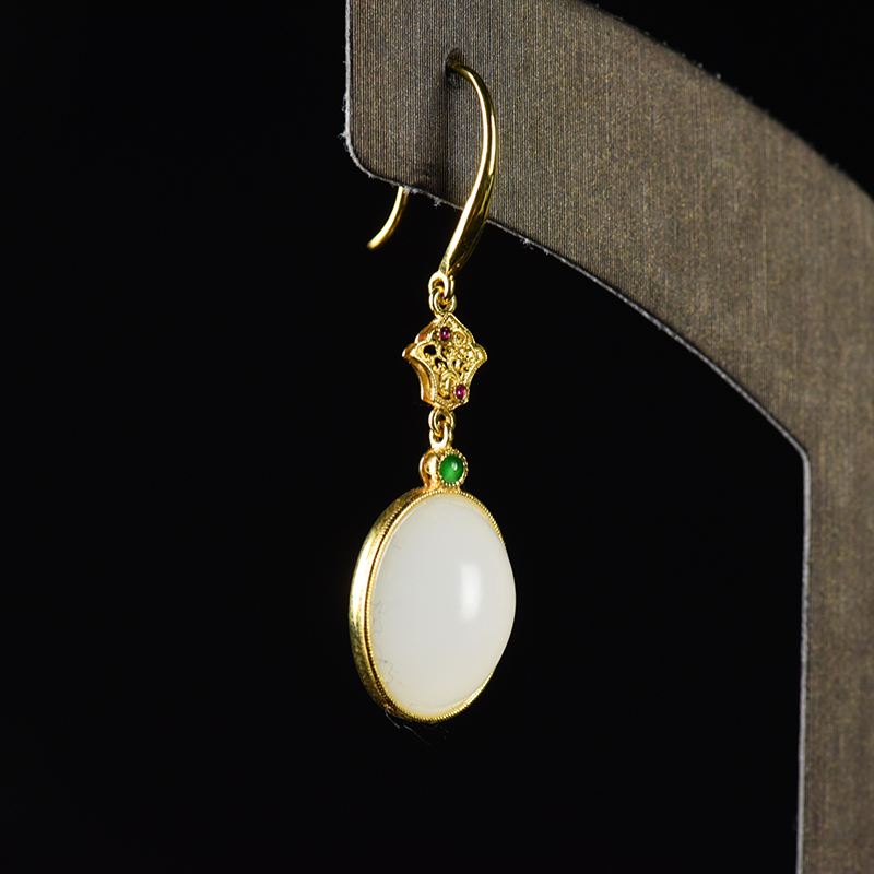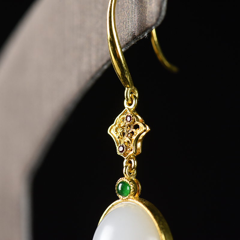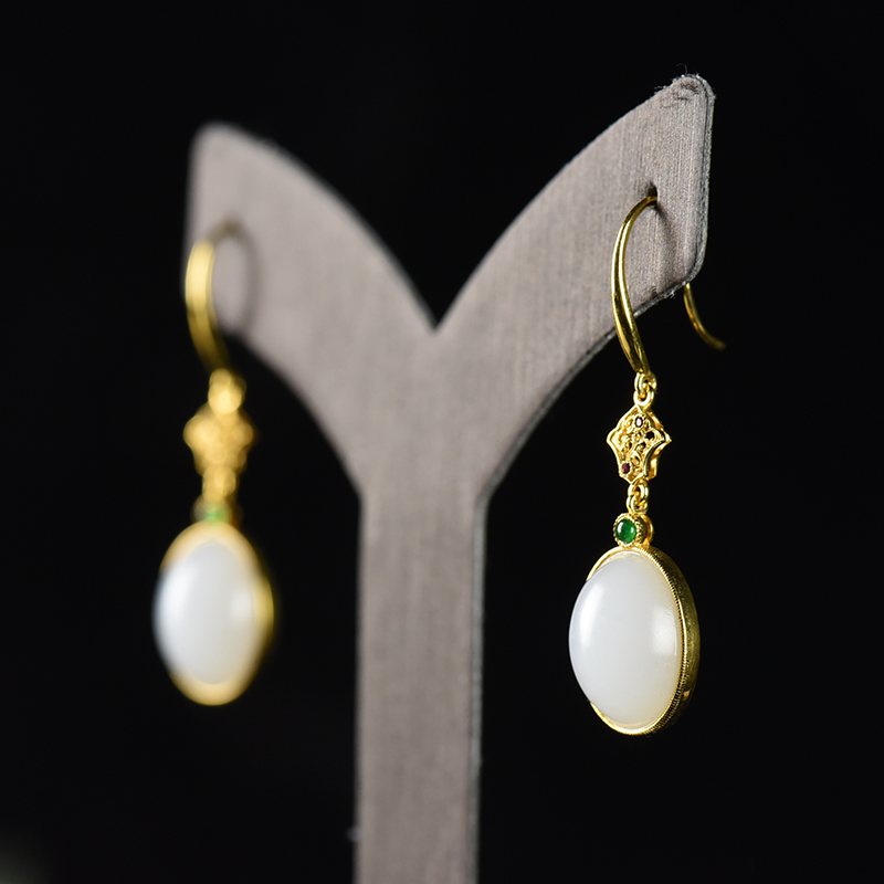 • 18K籽料和田白玉耳坠