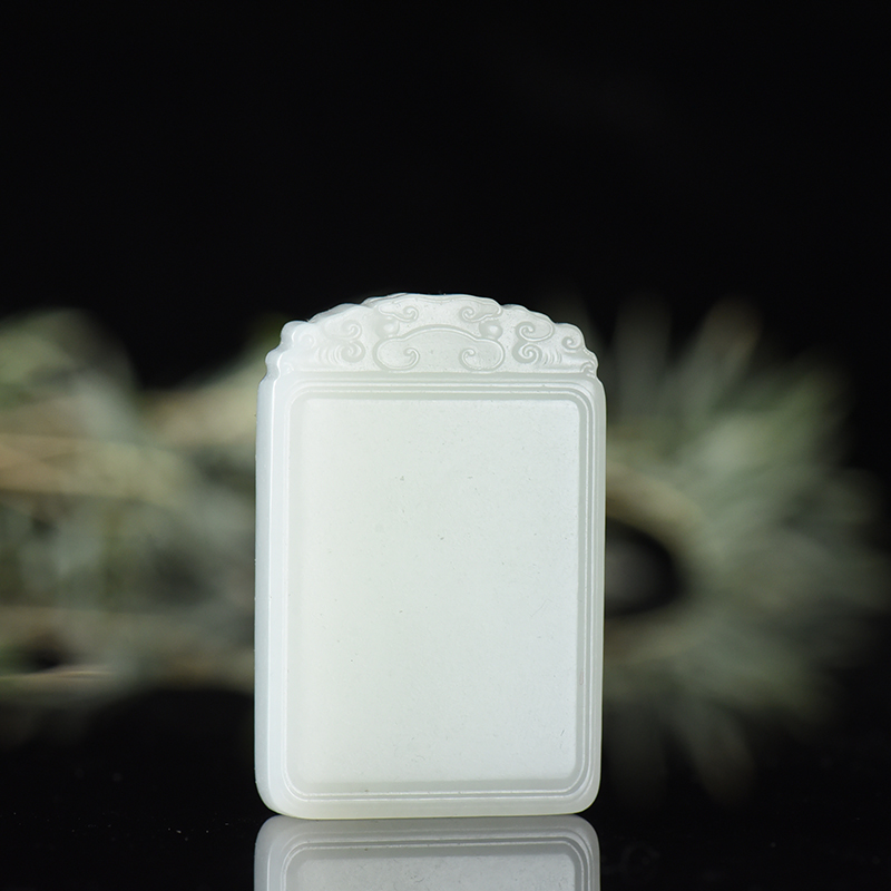 • 籽料和田白玉无事牌吊坠