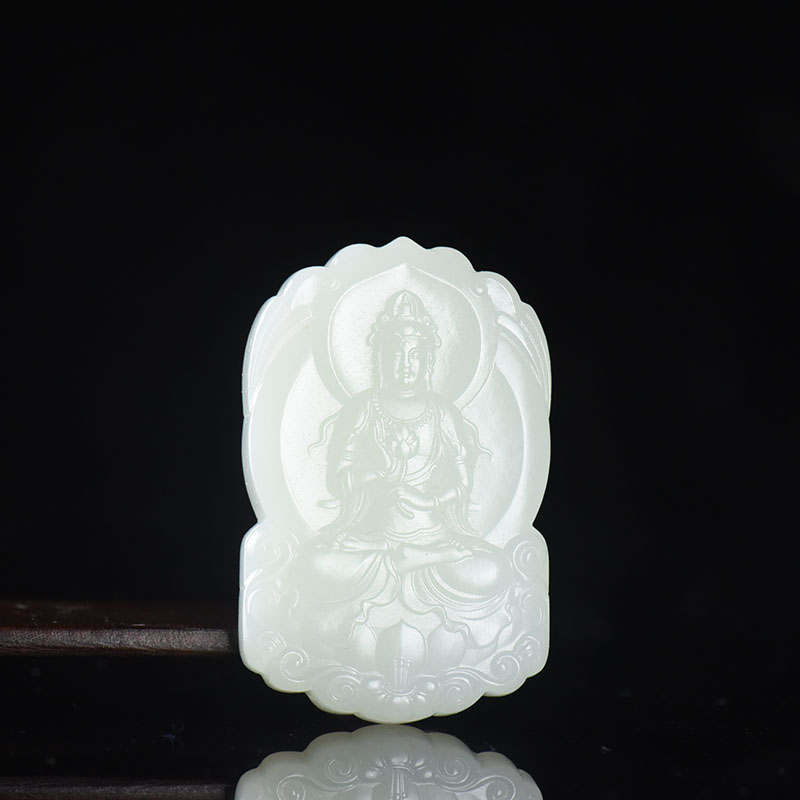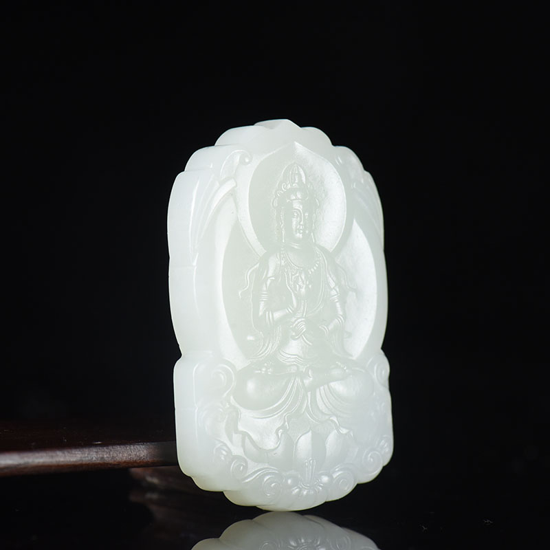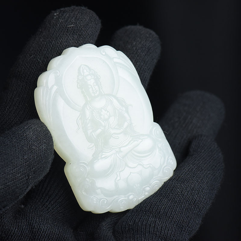 • 山料和田白玉持莲观音吊坠