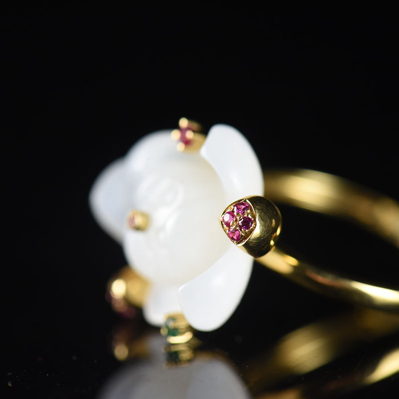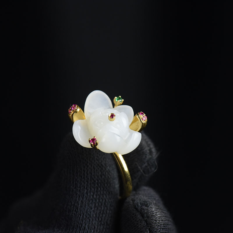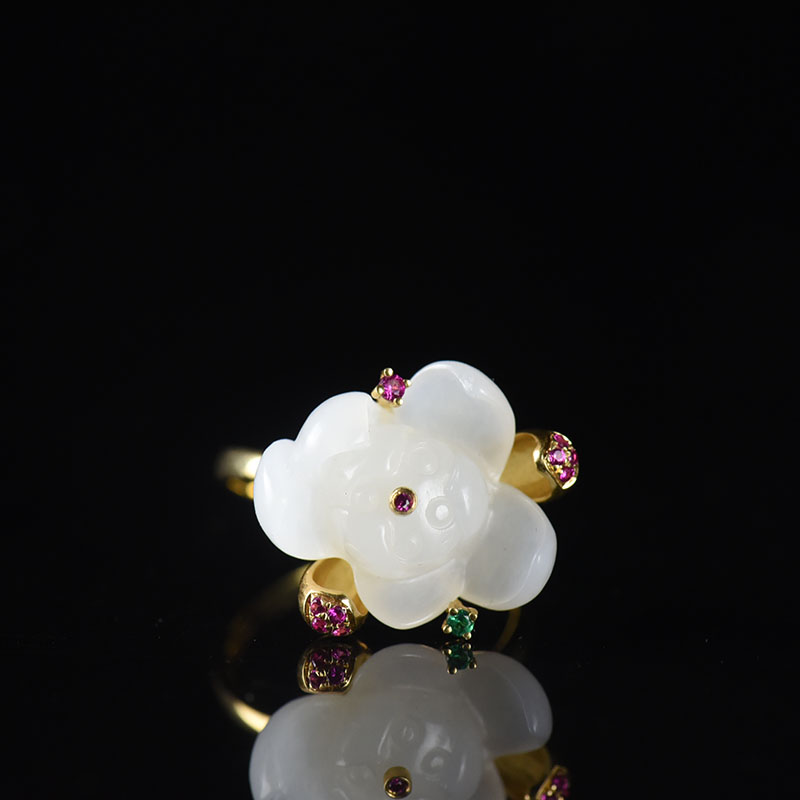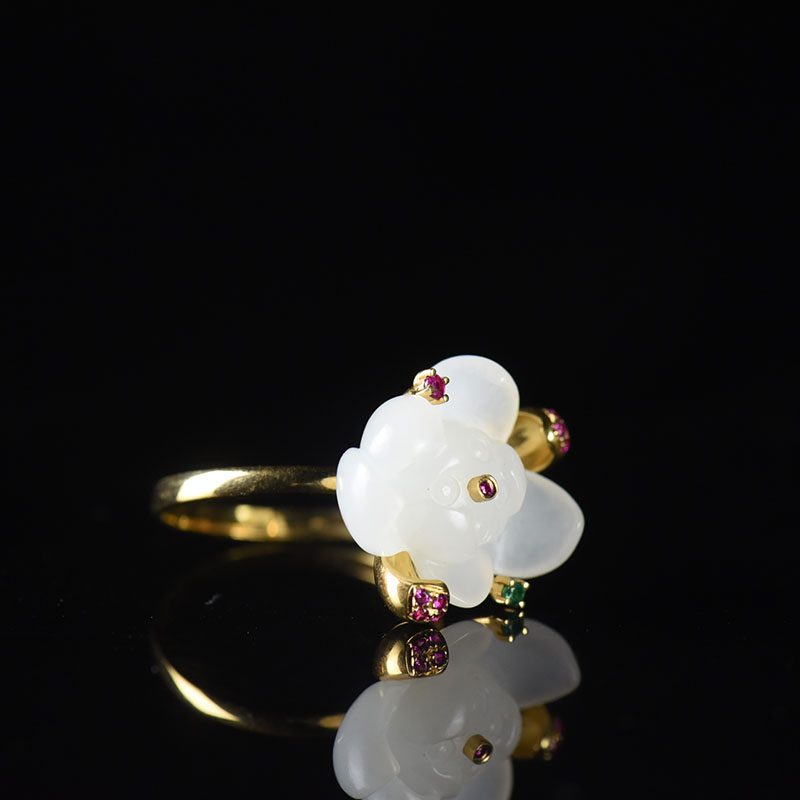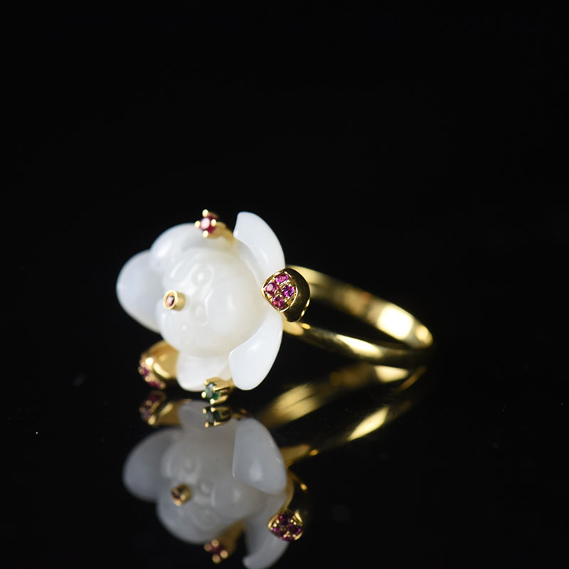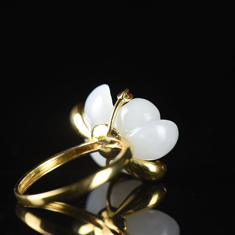 • [名  称] 18K籽料和田白玉荷韵戒指
