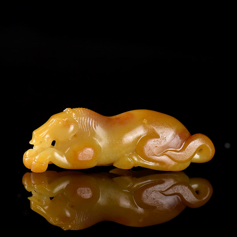 • 籽料和田玉黄沁马到成功吊坠