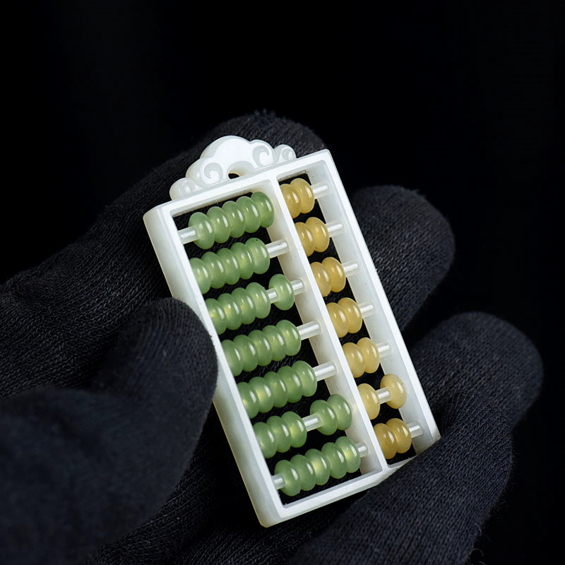 • 籽料和田白玉算盘吊坠