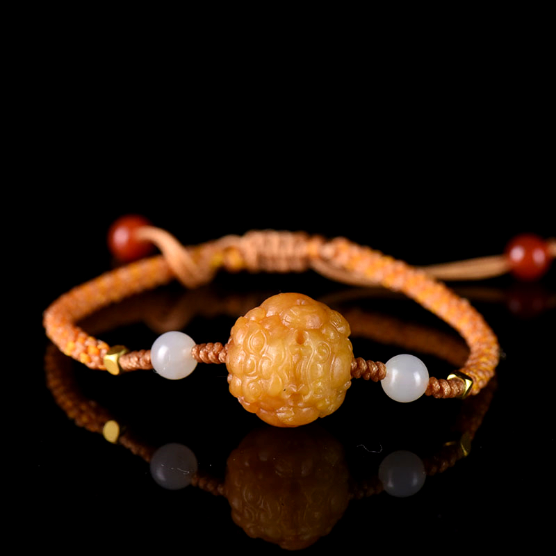 • 17mm籽料和田玉黄沁貔貅珠手绳