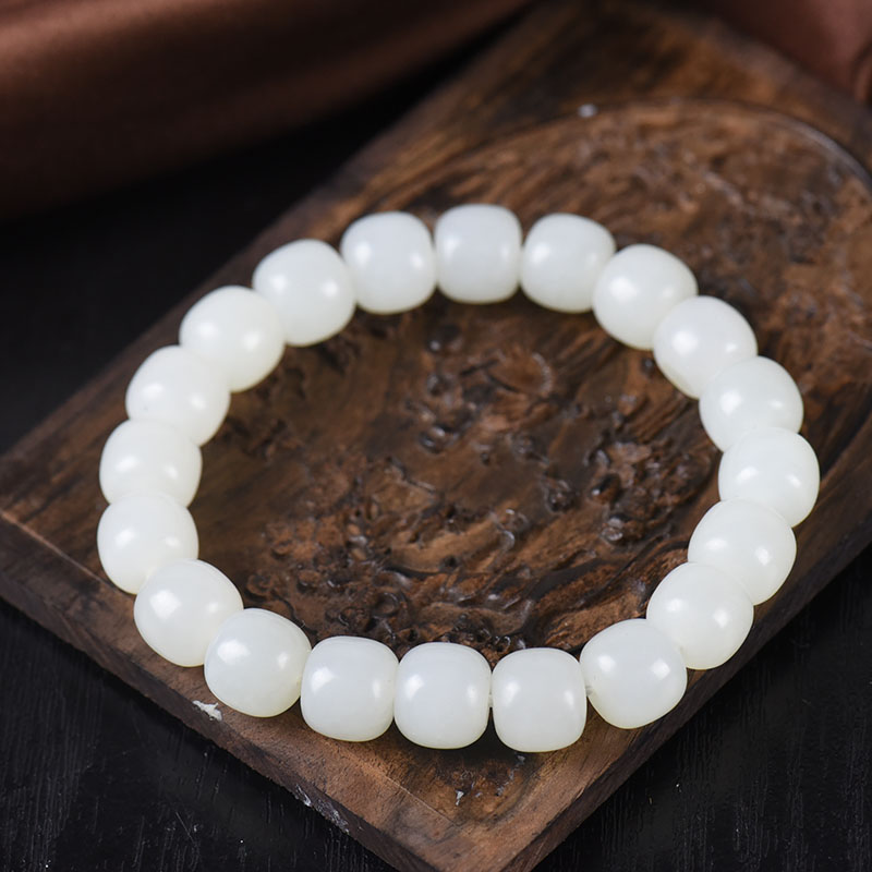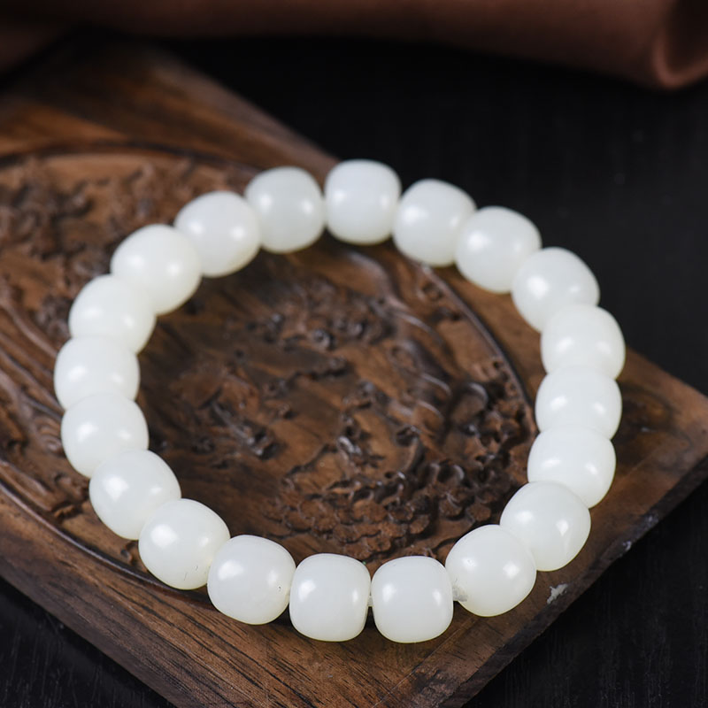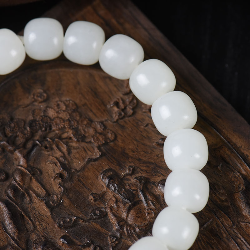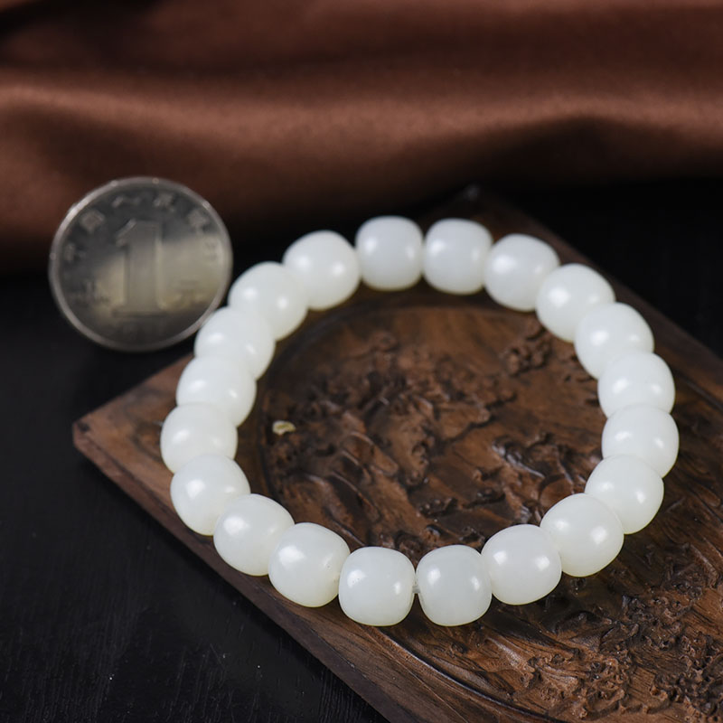 • 籽料和田白玉老形珠单圈手串